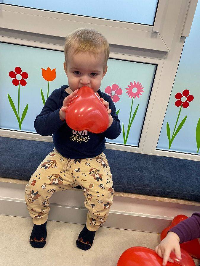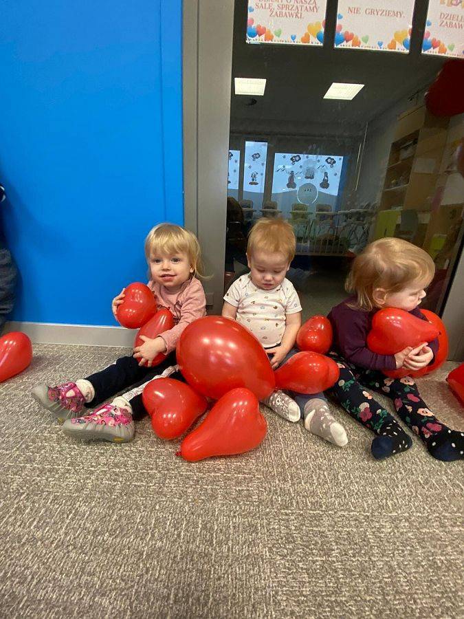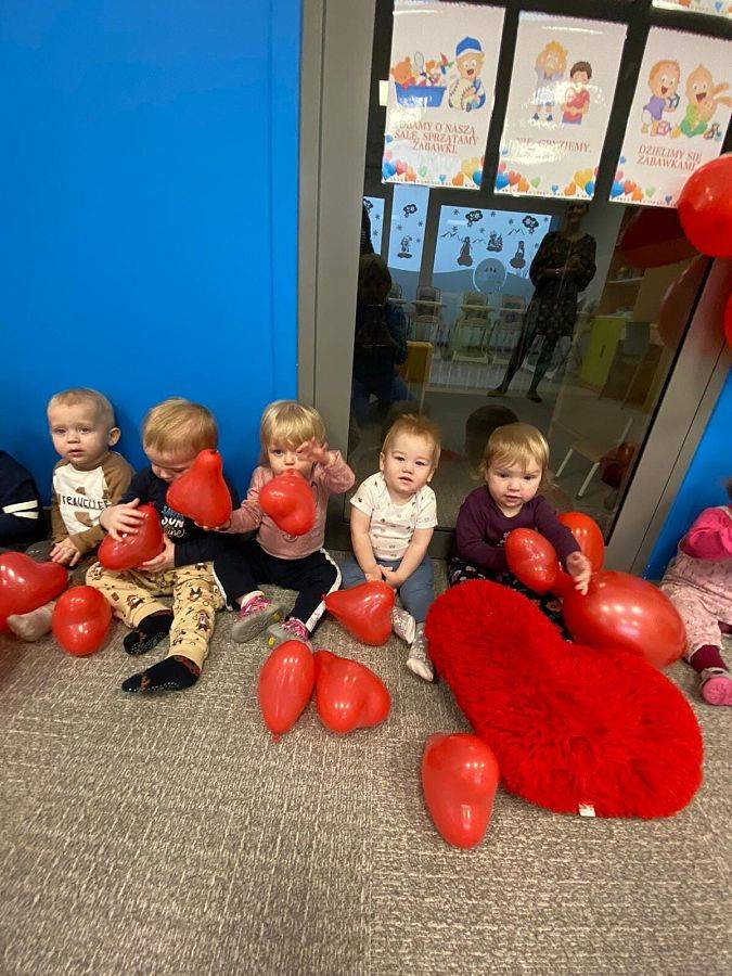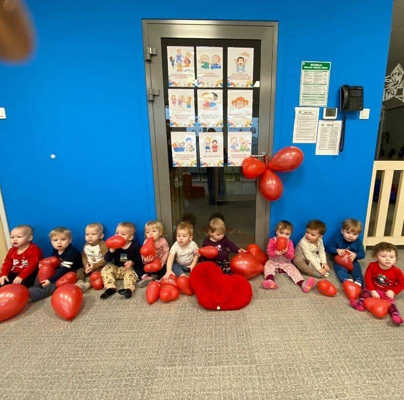 14 lutego wszystkie grupy żłobkowe obchodziły Walentynki. W tym dniu we wszystkich salach królował kolor czerwony, a głównym symbolem dekoracji były czerwone serduszka. Tego dnia zajęcia i wspólna zabawa zachęcały dzieci do integracji i radości z przebywania ze sobą. Z okazji Walentynek nasze Krasnoludki zrobiły dla swoich najukochańszych rodziców Walentynkowe Serca wykonane z samorobnej rosnącej farbki. W młodszych grupach dzieci wraz z Ciociami przygotowały słodkie upominki. W powietrzu unosił się zapach miłości i przyjaźni a wszędzie tańczyły serduszkowe balony. Dzisiejsze Walentynki w żłobku zaliczamy do wyjątkowo udanych.