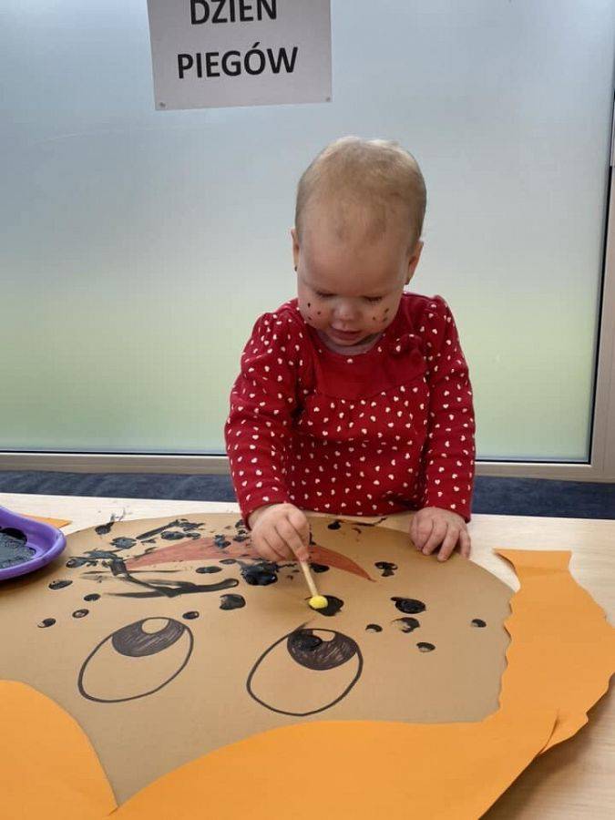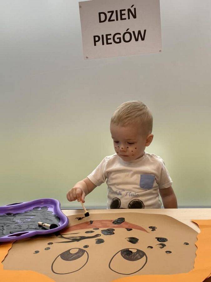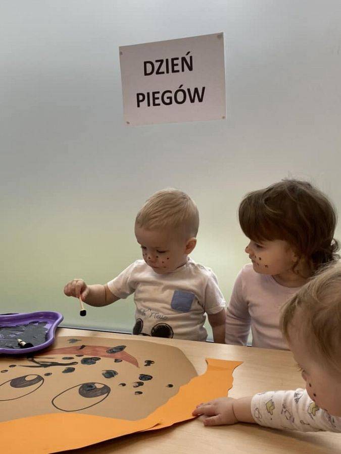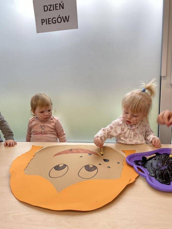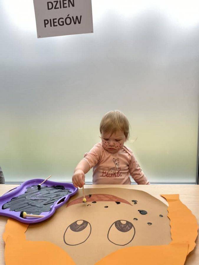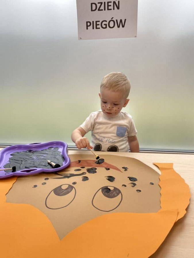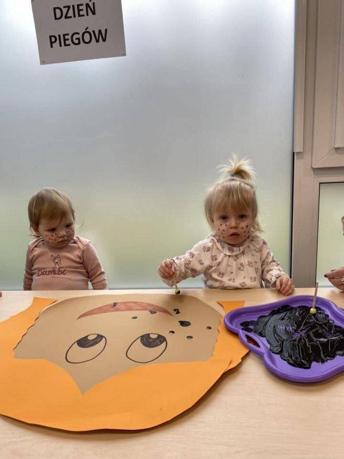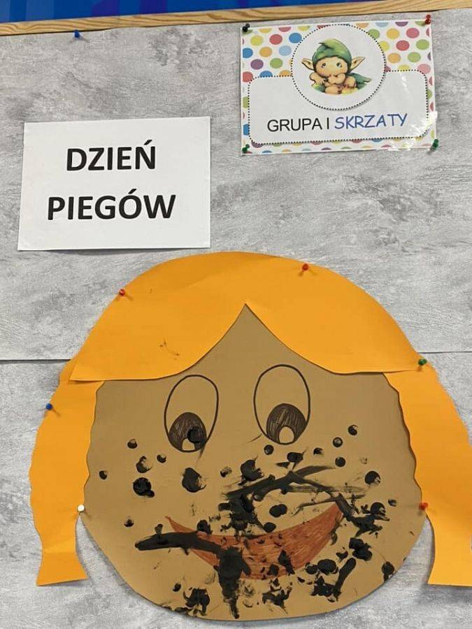 W kalendarzach nie znajdziemy tego święta, jednak ono istnieje i z tej okazji warto poświęcić chwilę refleksji plamkom na skórze, które wywołują tyle skrajnych emocji. Wiele osób obdarzonych piegami nie lubi swoich piegowatych nosów i policzków, a przecież mogą one być atutem urody, oryginalną cechą człowieka. Piegi docenili przede wszystkim autorzy literatury dla dzieci i młodzieży, którzy chętnie obdarzali nimi swoich wspaniałych bohaterów. Wśród tych najbardziej popularnych są chociażby Pippi Langstrump, Pan Kleks, Marek Piegus, Ania z Zielonego Wzgórza czy Tomek Sawyer. Dlatego też, aby pokazać, że piegowate może być piękne i wesołe obchodziliśmy w naszym żłobku Dzień Piegów. Tego dnia na korytarzach zaroiło się od piegowatych prac plastycznych i nie tylko. Niektórzy woleli pozostać sobą, ale w wersji piegowatej.