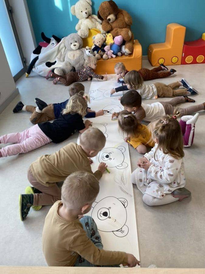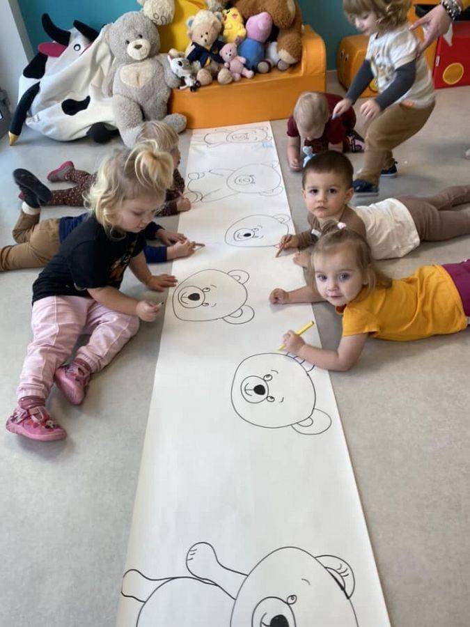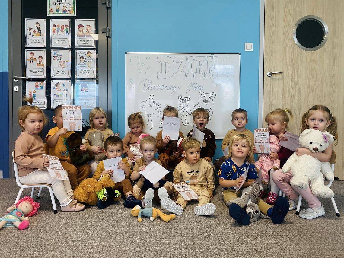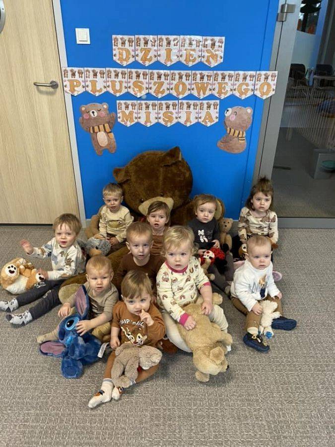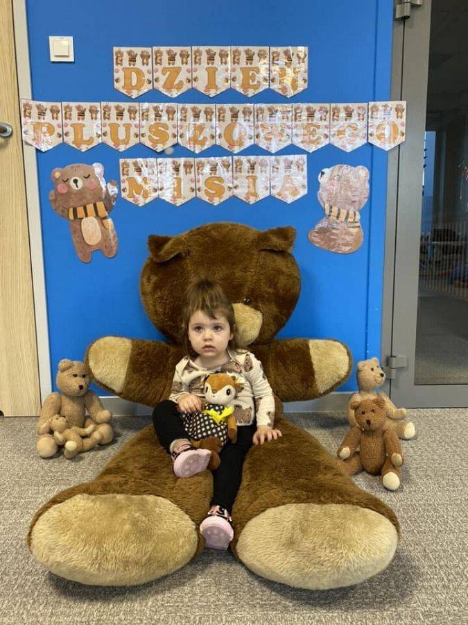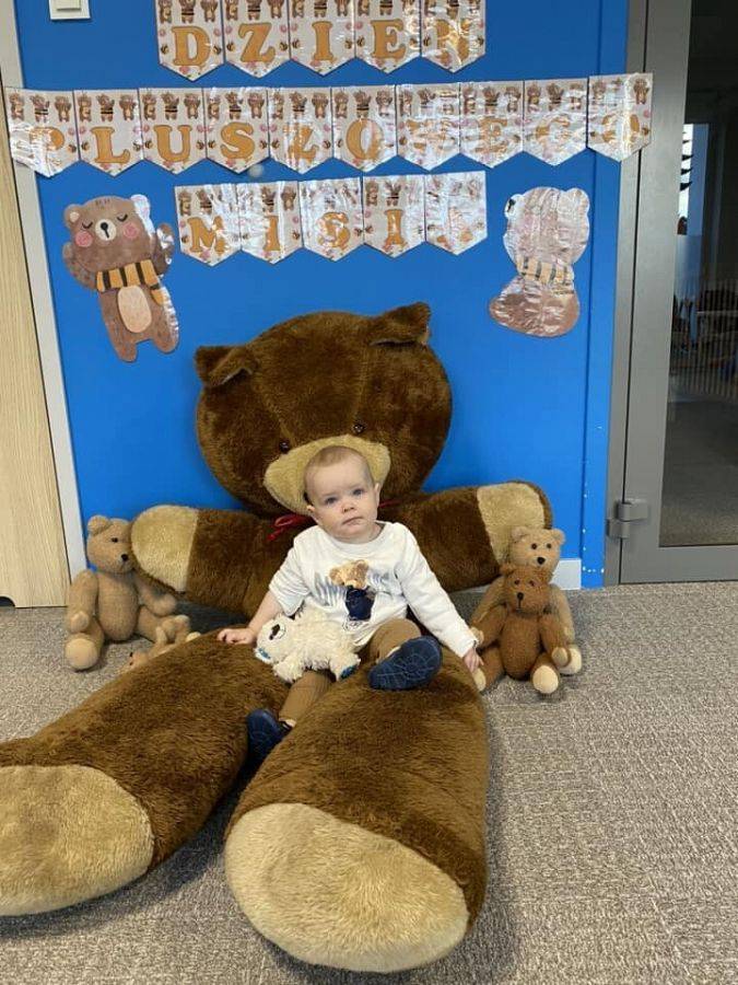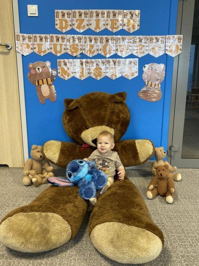 W naszym żłobku to zacne święto obchodziliśmy w piątek, 24 listopada. Pluszowy miś to symbol miłości, ciepła i poczucia bezpieczeństwa. Zapewne każdy z nas ma swojego jednego, ulubionego misia z dzieciństwa. Nasze maluszki również mają swoje ukochane Przytulanki. Dziś mogły z nimi spędzić cały dzień w żłobku. Zobaczcie jak się z nimi bawiliśmy. Zabawom i śmiechom nie było końca. Dzieci z wszystkich grup wykonały piękne prace plastyczne o tematyce "misiowej", przy okazji ćwicząc małą motorykę i zręczność paluszków. cudowne zdjęcia z tego dnia będą zapewne miłą pamiątką dla nas.