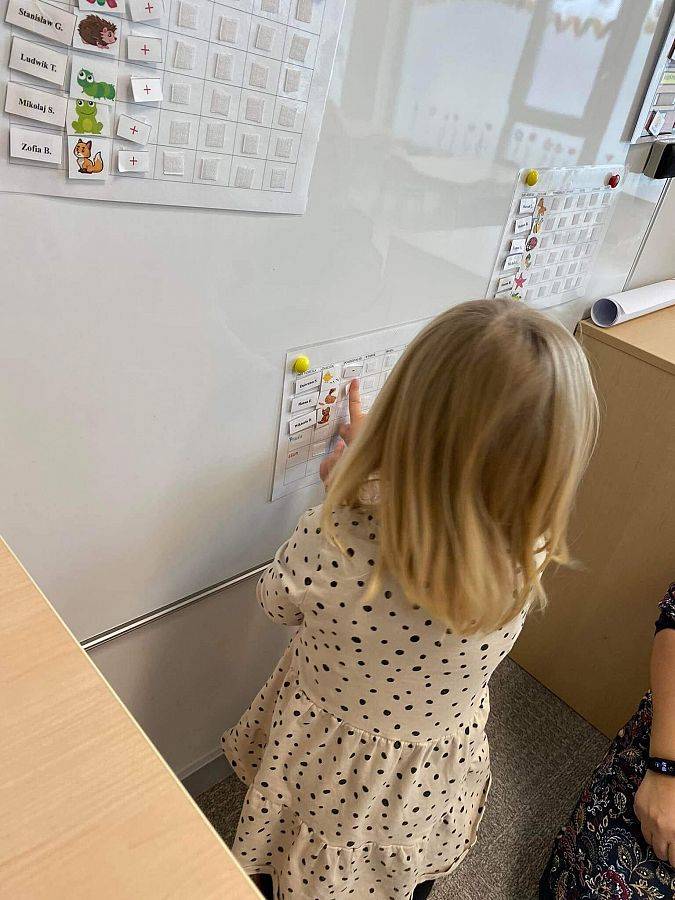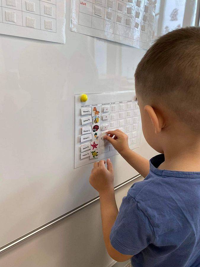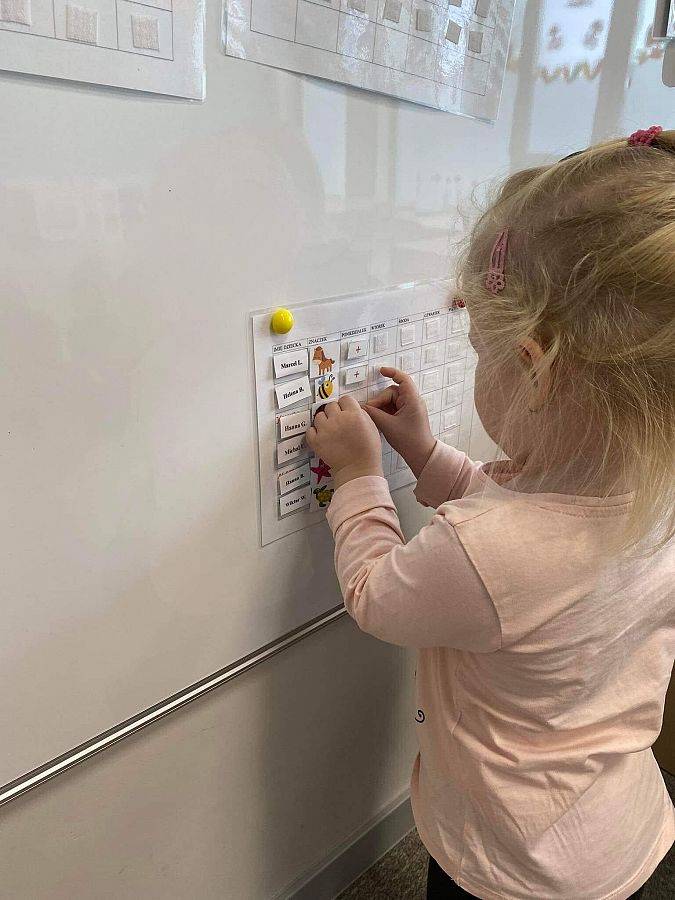 Nastał ten czas, aby nasze małe dzieci stały się prawdziwymi starszakami. Zajęcia polegały na umieszczaniu plusików na liście obecności. To świetne zajęcie , wspomagające zapamiętywanie swoich znaczków.