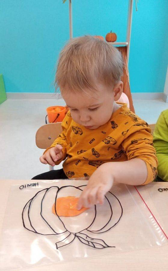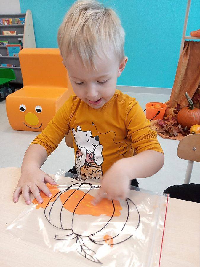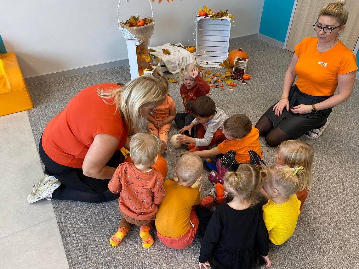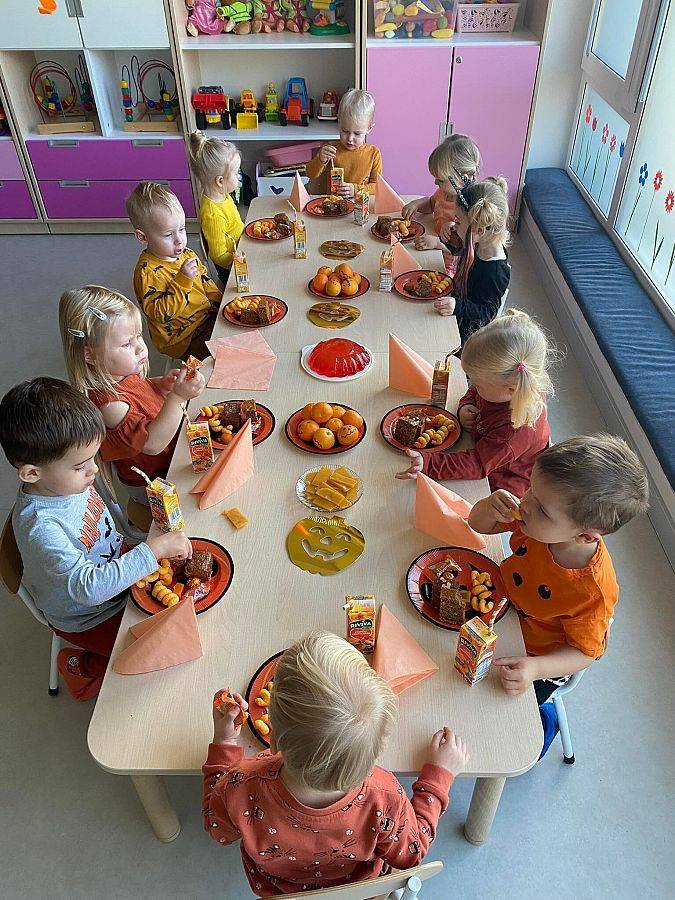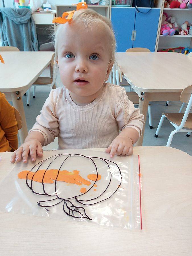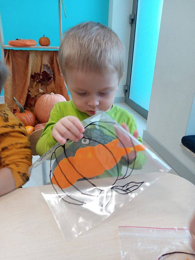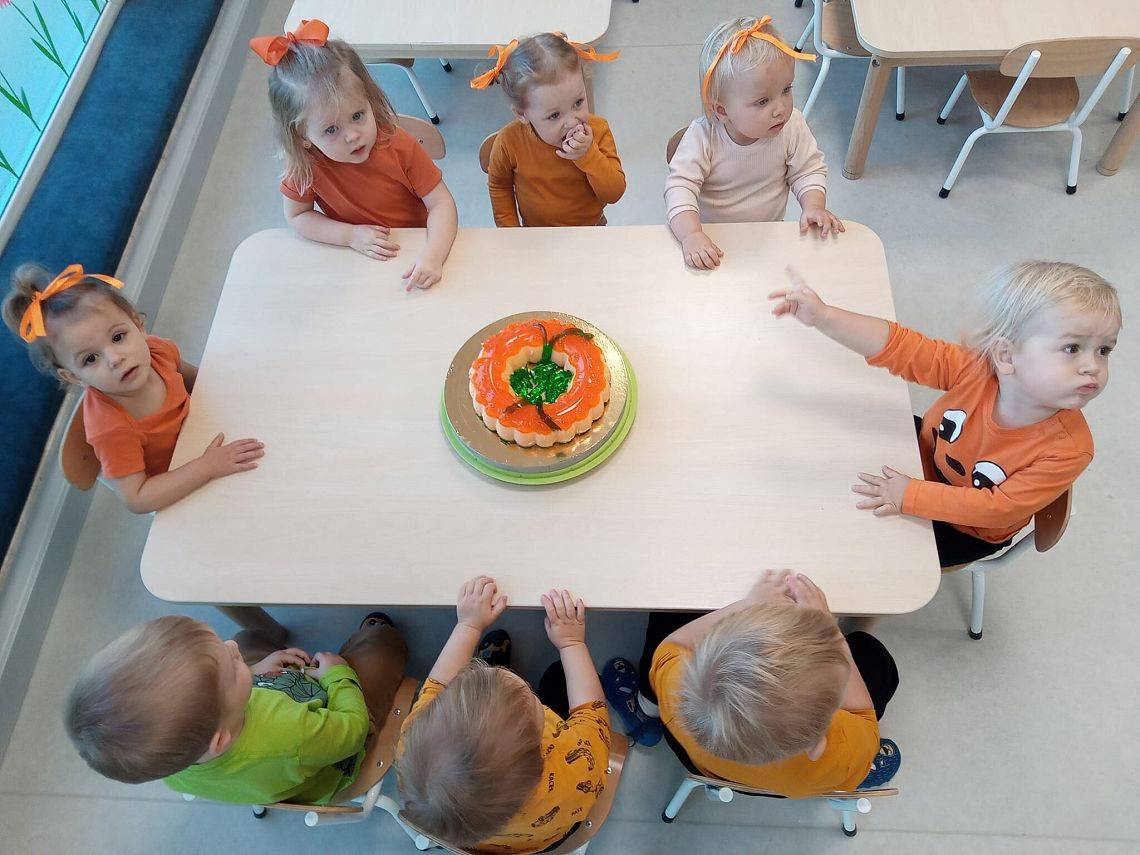Nasze Krasnoludki z kolei z zaciekawieniem oglądały i dotykały przygotowane przez nas różnego rodzaju dynie, zapoznały się z ich kształtem, wielkością i strukturą. Bawiliśmy się również w turlanie dynią, rzut do celu oraz przeciąganie liny. Zjedliśmy przepyszny poczęstunek, za który bardzo dziękujemy wszystkim rodzicom.