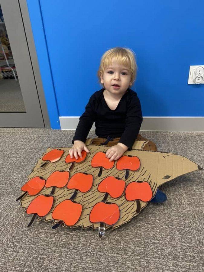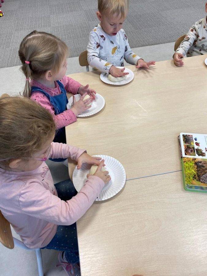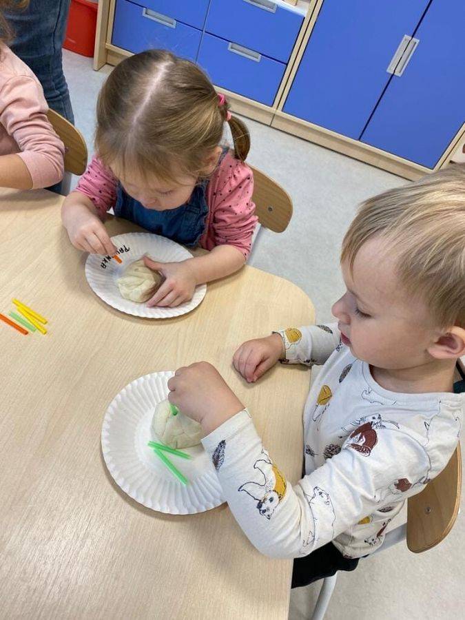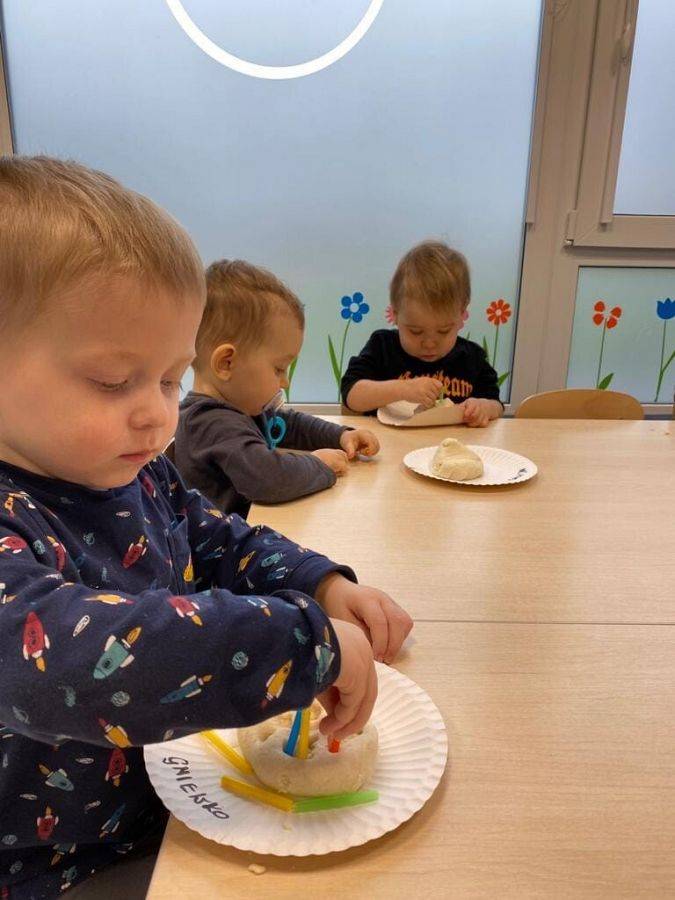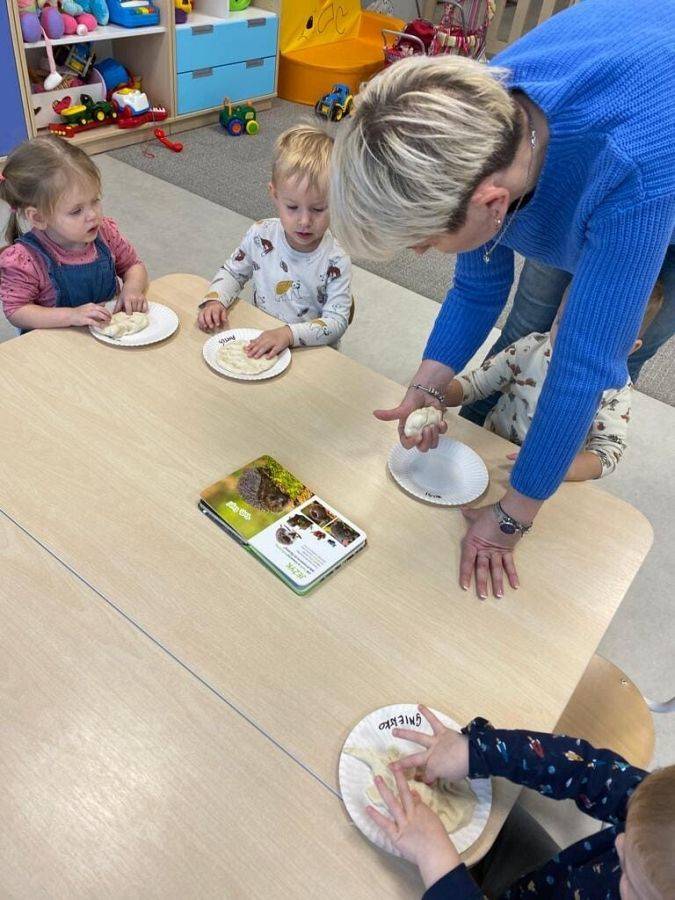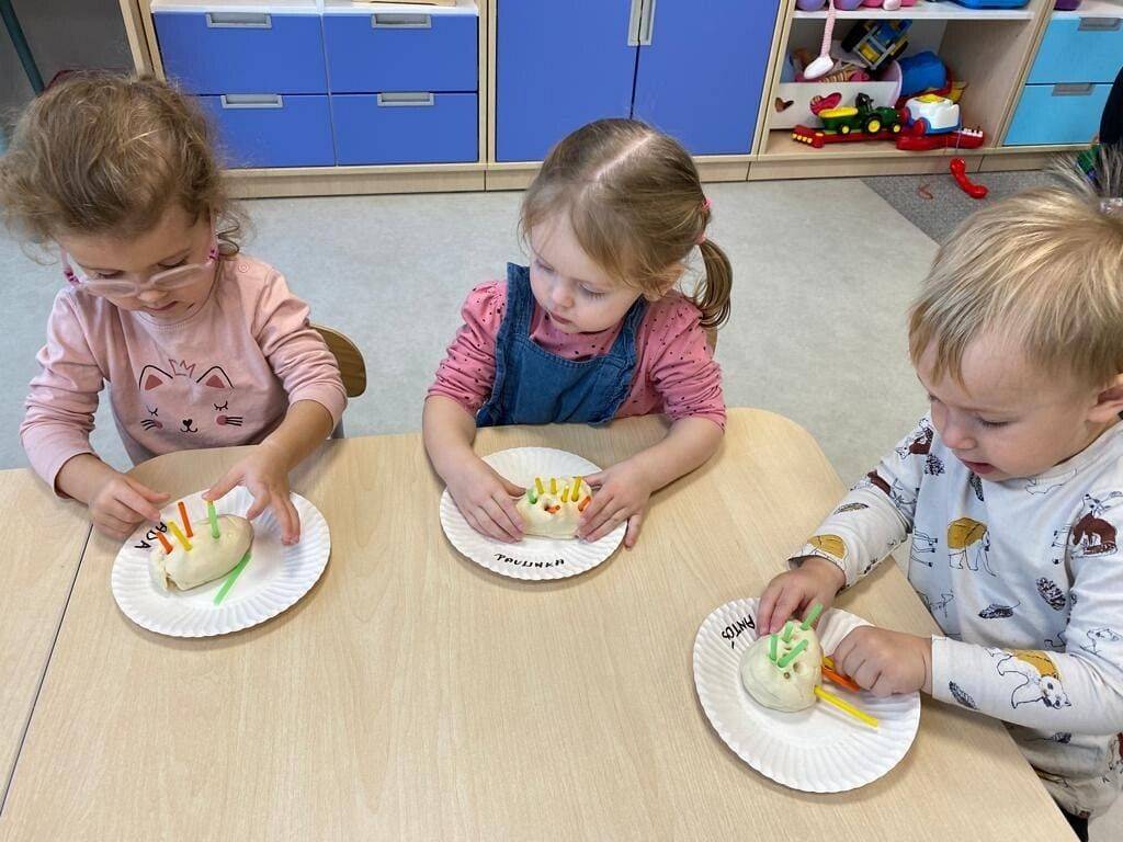 Nie wiedzą, że w listopadzie obchodzimy Dzień Jeża, bo wtedy śpią już zwinięte w ciasny kłębuszek w swoim gnieździe z liści i trawy, ukrytym wśród gałęzi na ziemi. W tym jakże ważnym dla naszej przyrody dniu, starsze dzieci wykonały prace z masy solnej. Młodsze dzieciaki ćwiczyły małą motorykę "ubierając" małego jeżyka w kolorowe kolce oraz nakładając na grzbiet czerwone jabłka.