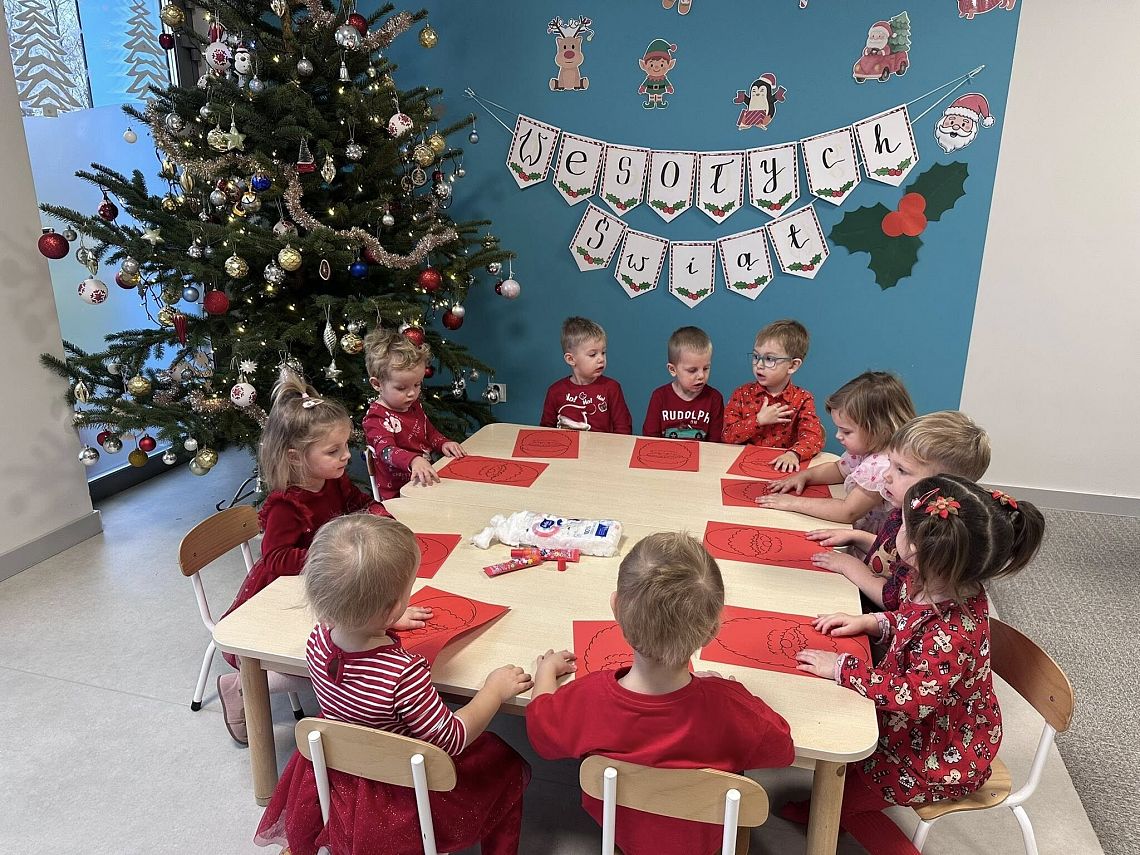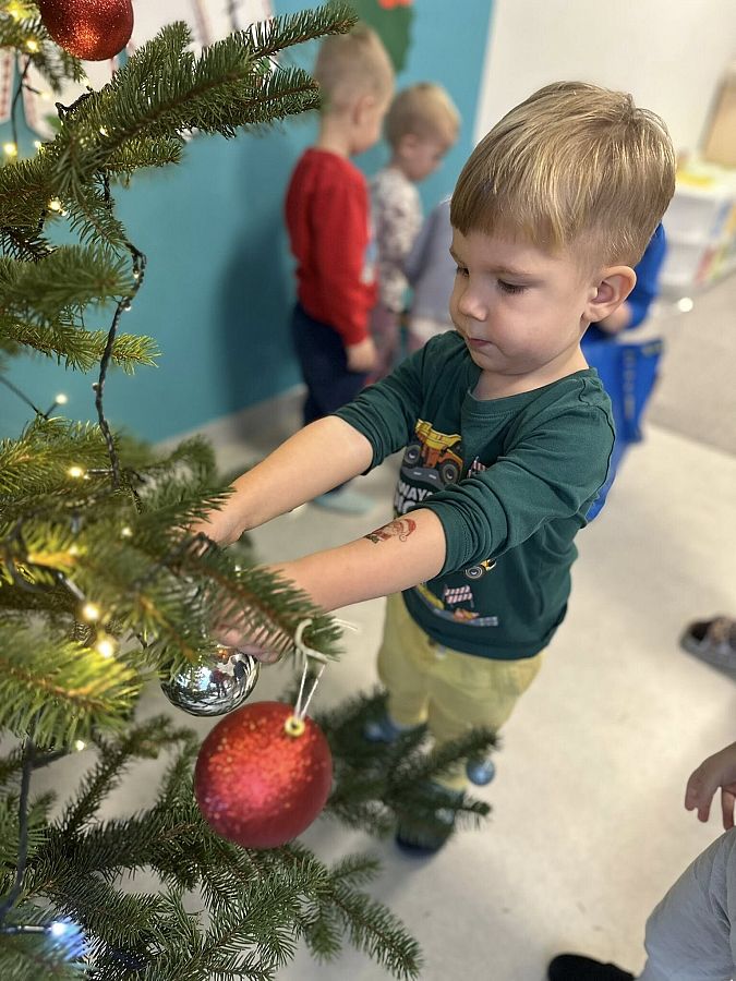 Dzieci ubierały świąteczną choinkę, otrzymały prezenty od Mikołaja, zaśpiewały piosenkę „Mikołaju”, a na koniec wykonały kreatywną pracę plastyczną – własnego Mikołaja z użyciem miękkiej waty. To był magiczny, pełen uśmiechów dzień!
