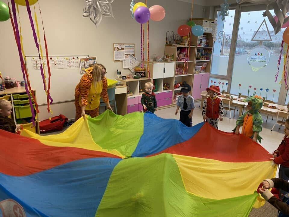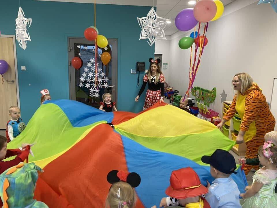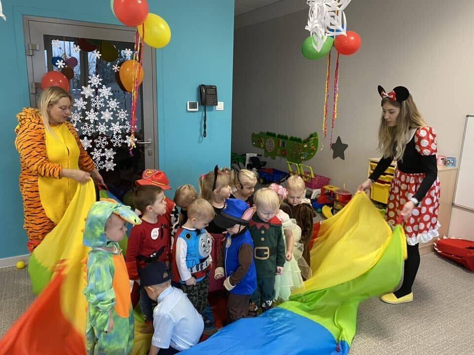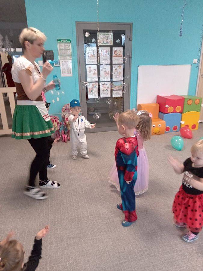 Nasze maluszki bawiły się wspaniale. Kochani rodzice dziękujęmy Wam za tak duże zaangażowanie w przygotowanie naszej zabawy.