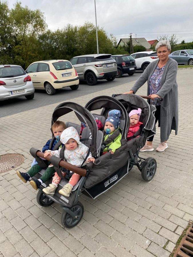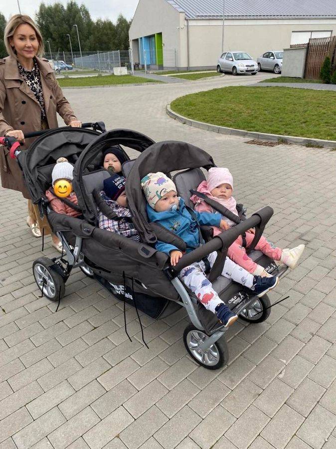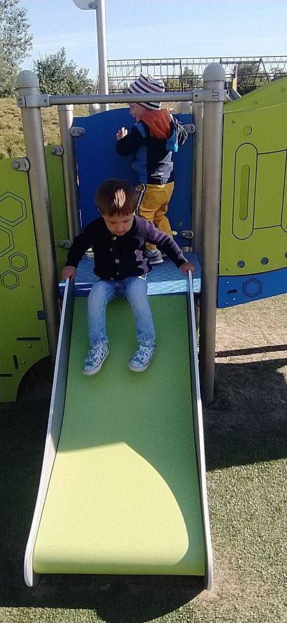 Wyszliśmy z naszymi dziećmi na pierwszy spacer. Chociaż na dworze już lata nie widać, ale sprawdzaliśmy czy się gdzieś za rogiem nie czai się jesień, Dzieci po zajęciach, zabawie i krótkim spacerku jemy obiadek i powoli uczymy dzieci zasypiać na popołudniową drzemkę.