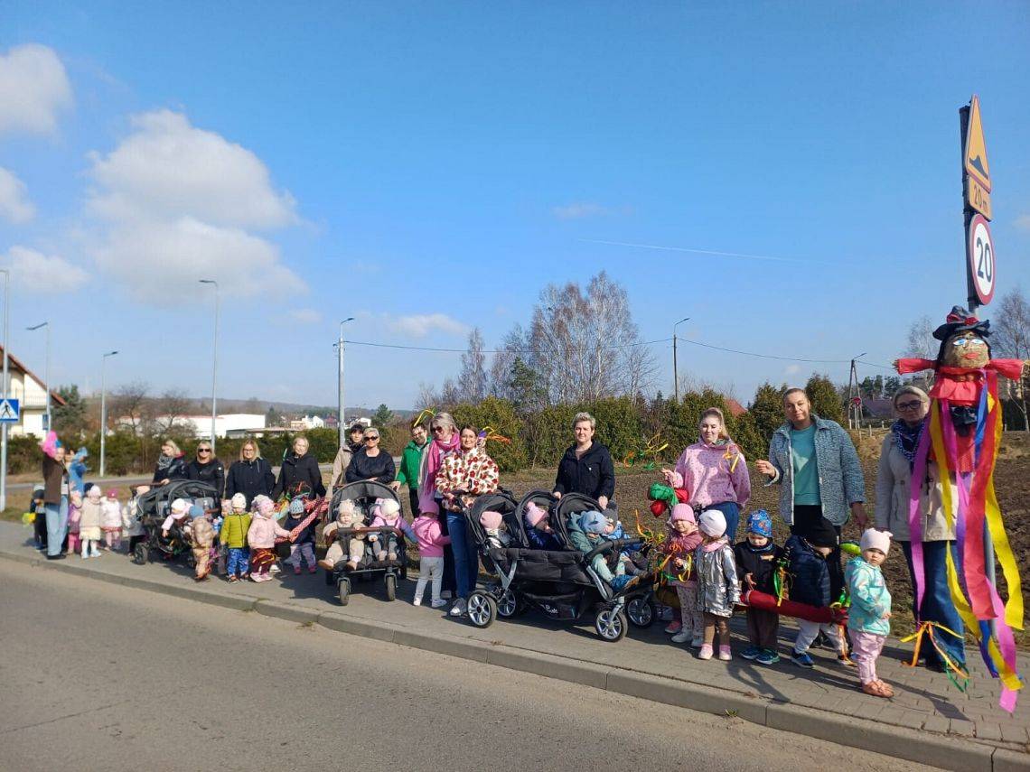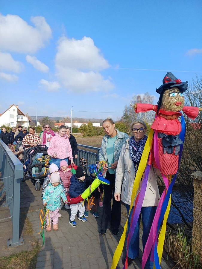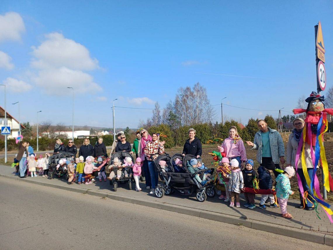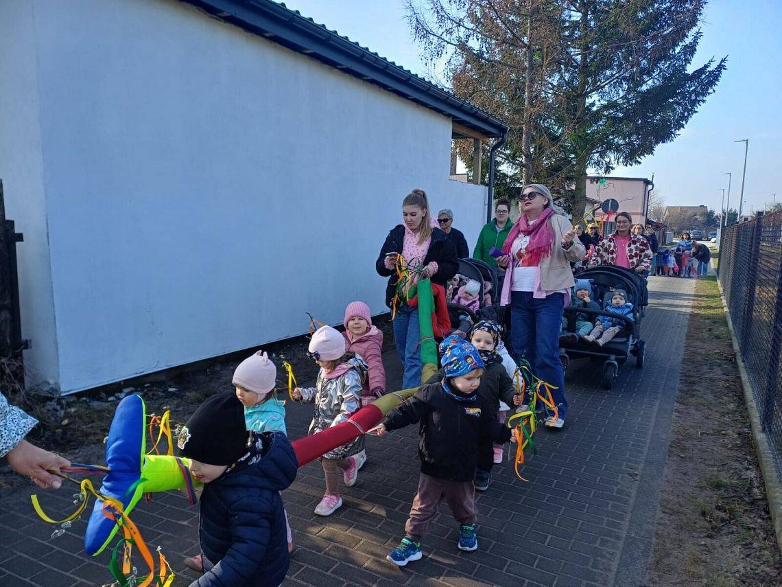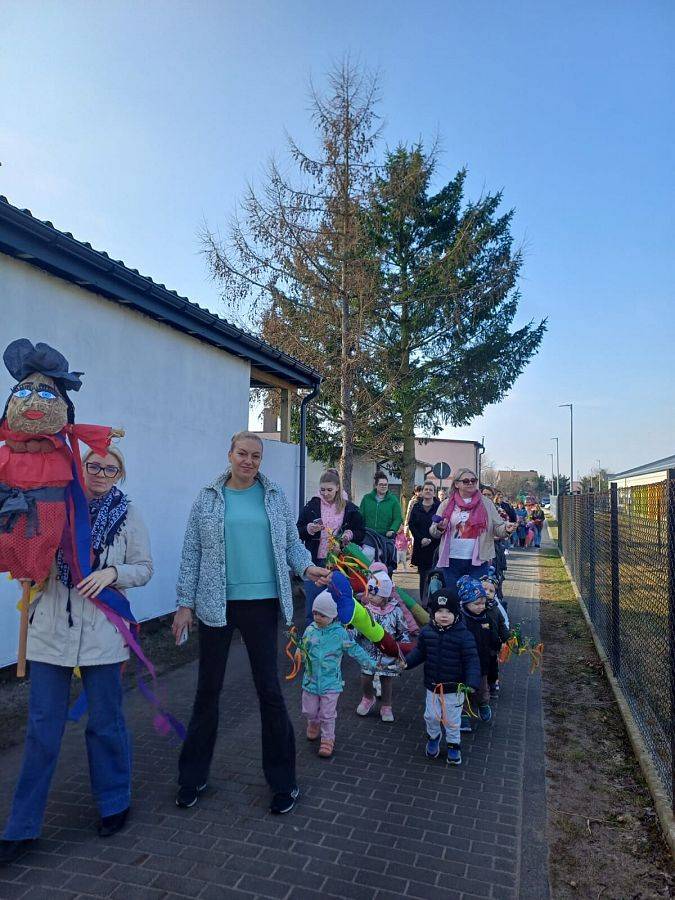 Wiosna to bez wątpienia, jedna z najpiękniejszych pór roku, dlatego jest zawsze radośnie witana przez wszystkie dzieci. Tego dnia mieliśmy okazję przemaszerować ulicami gminy w poszukiwaniu Pani Wiosny. Dzieci radośnie śpiewały "Wiosno, Wiosenko" i "Nasza wiosna, wiosenka" oraz radośnie machały udekorowanymi gałązkami przywołując wiosnę. Nasz korowód na którego czele szła Marzanna, dotarł do samego centrum, Pochód wiosenny zakończył się przed żłobkiem gdzie dzieci znalazły pierwsze oznaki wiosny - przebiśniegi, sasanki, pączki na drzewach oraz radosny śpiew ptaków. Oto krótka relacja z tego pięknego wydarzenia.