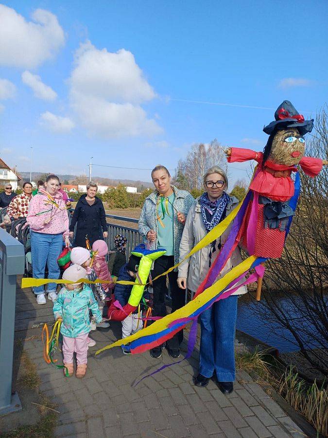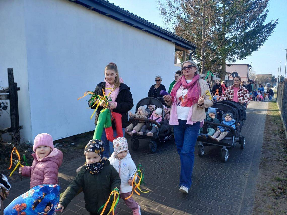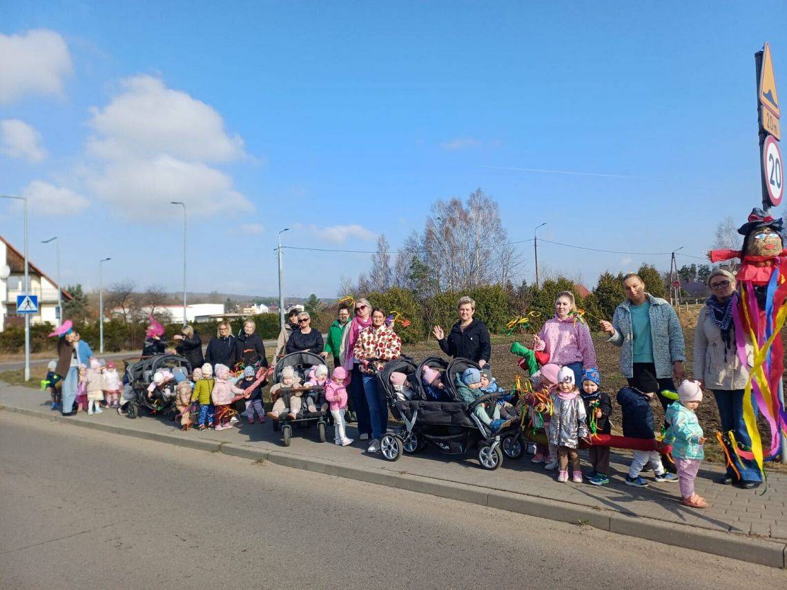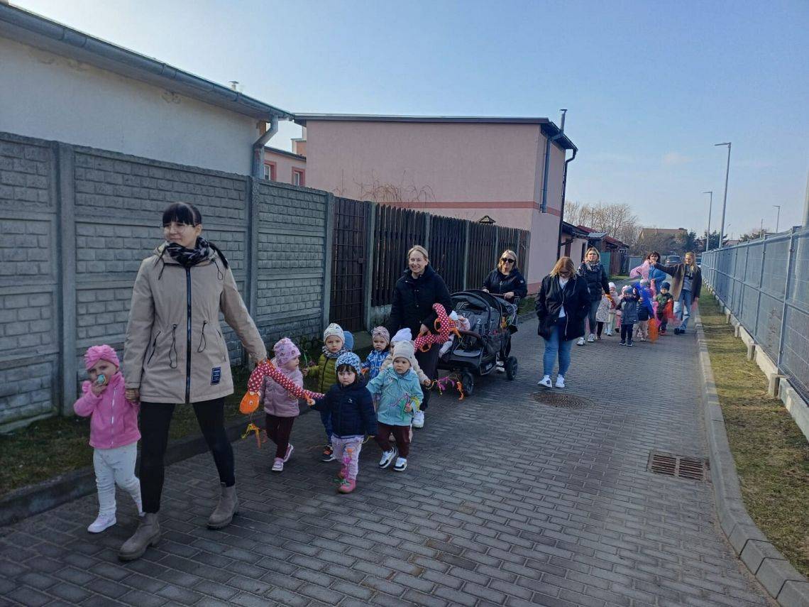 Wiosna to bez wątpienia, jedna z najpiękniejszych pór roku, dlatego jest zawsze radośnie witana przez wszystkie dzieci. Tego dnia mieliśmy okazję przemaszerować ulicami gminy w poszukiwaniu Pani Wiosny. Dzieci radośnie śpiewały "Wiosno, Wiosenko" i "Nasza wiosna, wiosenka" oraz radośnie machały udekorowanymi gałązkami przywołując wiosnę. Nasz korowód na którego czele szła Marzanna, dotarł do samego centrum, Pochód wiosenny zakończył się przed żłobkiem gdzie dzieci znalazły pierwsze oznaki wiosny - przebiśniegi, sasanki, pączki na drzewach oraz radosny śpiew ptaków. Oto krótka relacja z tego pięknego wydarzenia.