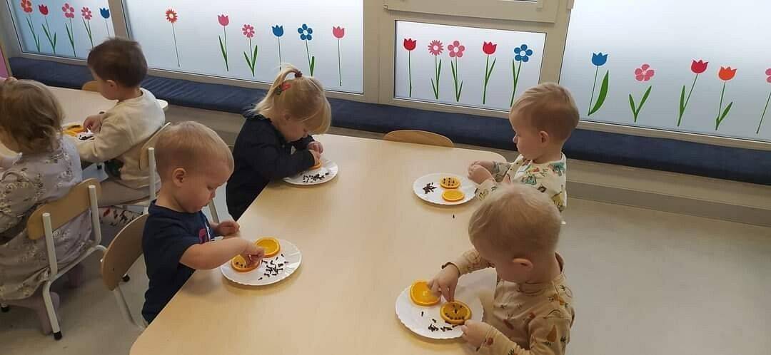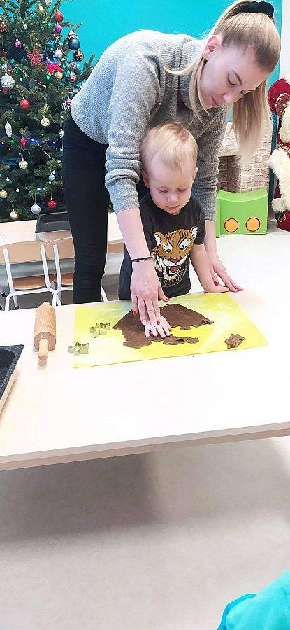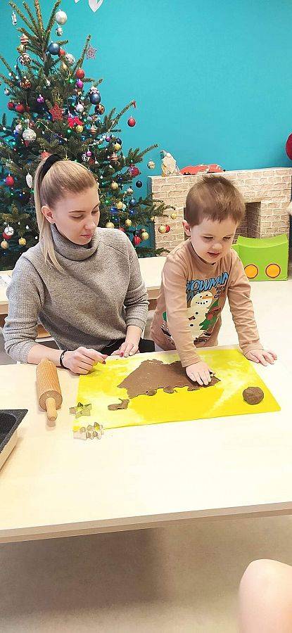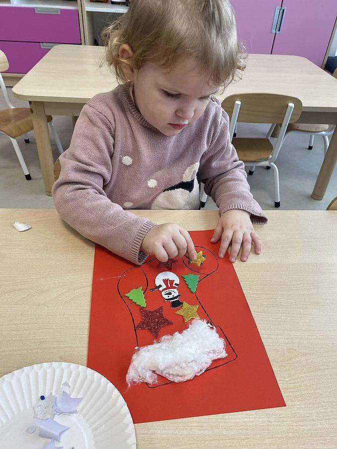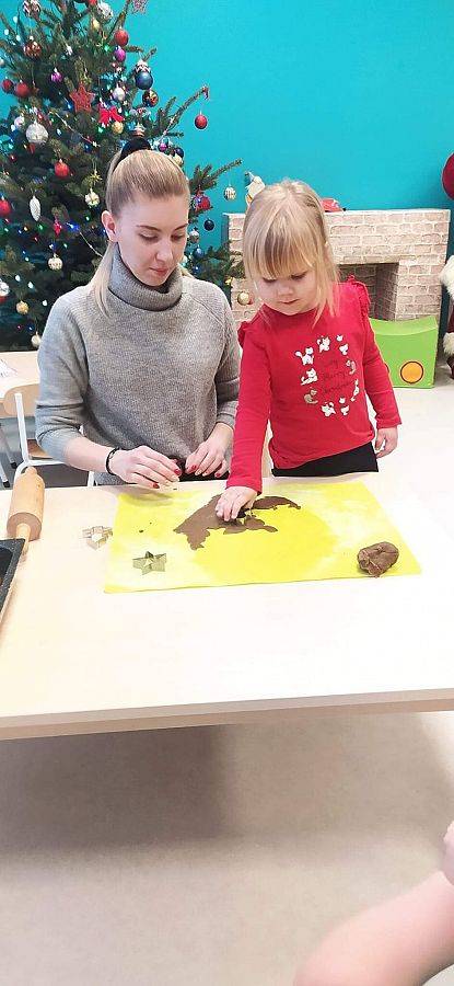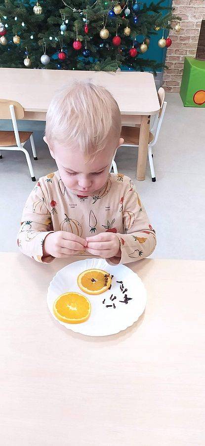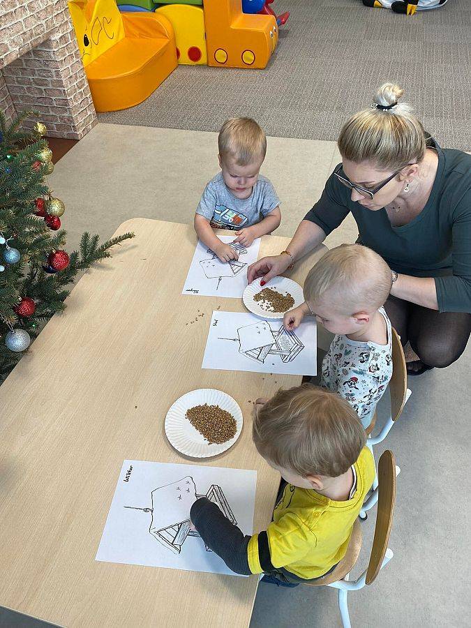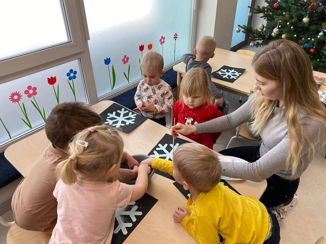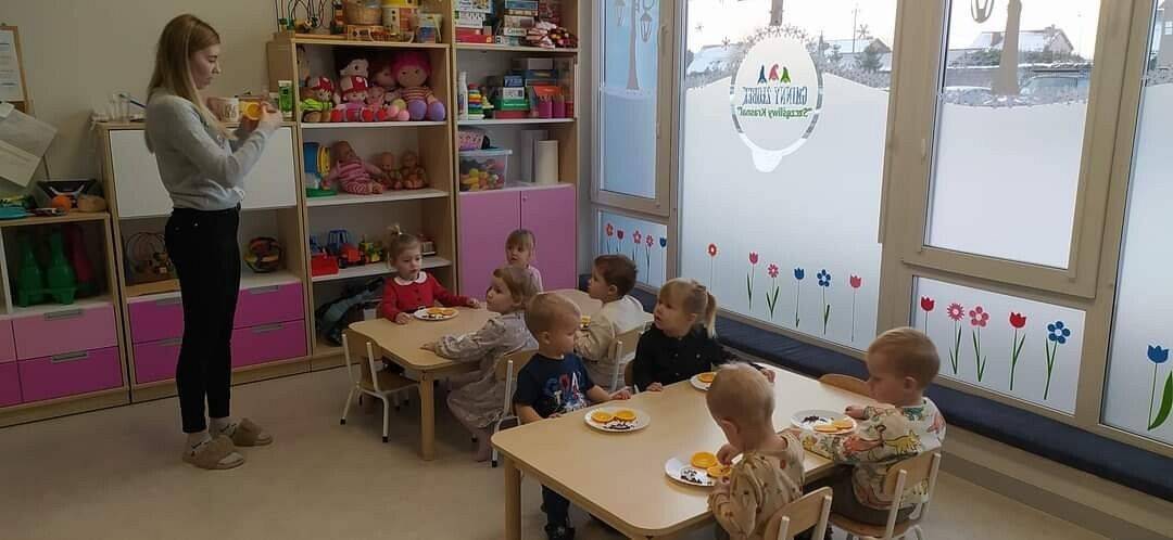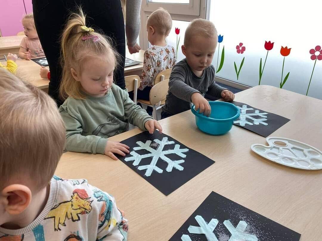 W Grudniu grupa Krasnoludki skupiała się na zajęciach rozwijających motorykę małą oraz doznania sensoryczne. Z okazji Mikołajek dzieci wykonały świąteczne skarpety, które ozdabiały według własnego uznania. Nawiązując do zimowej aury grudnia maluszki zapoznały się z cukrem, który okazał się bardzo słodki w smaku. Ćwicząc swoje małe paluszki dzieci posypywały nim śnieżynki, tworząc na nich szron. Nie ominęły nas również przygotowania do świąt. Dzieci wykonały pachnące ozdoby choinkowe z pomarańczy oraz wykrajały świąteczne pierniczki.