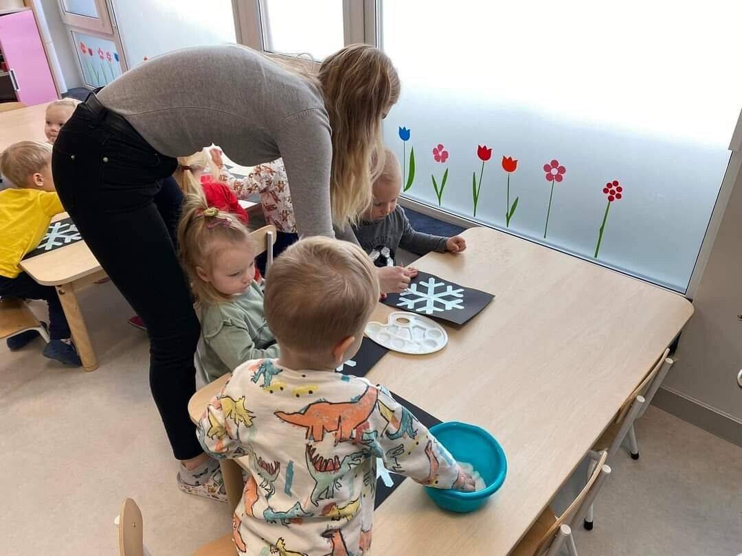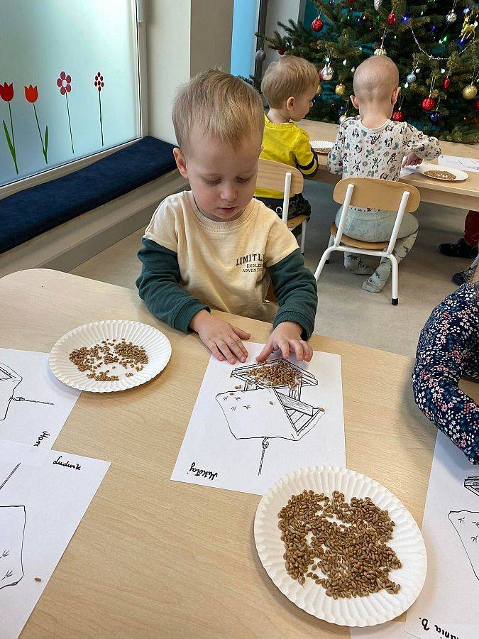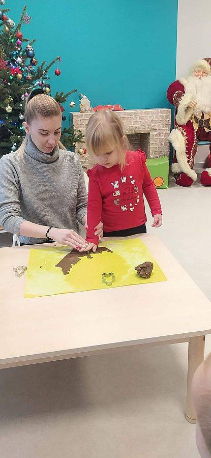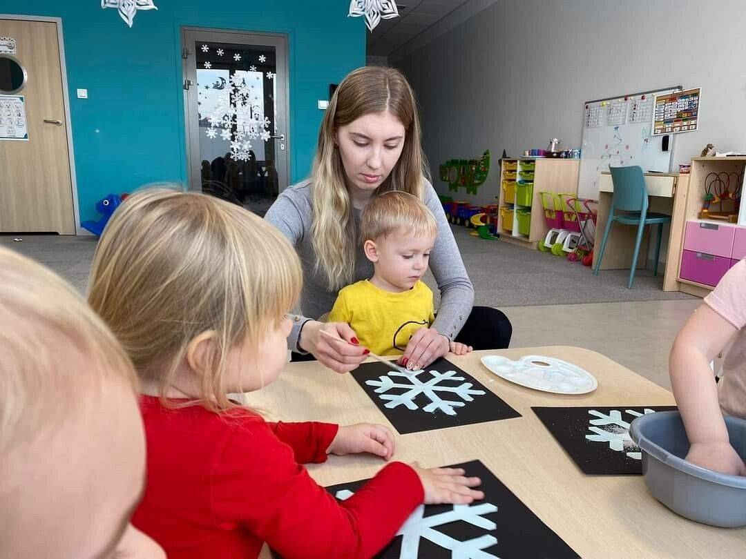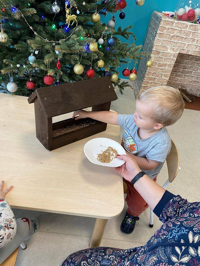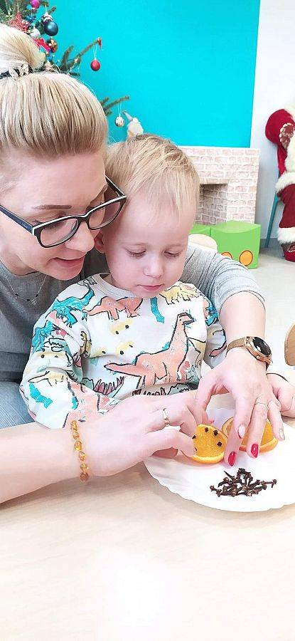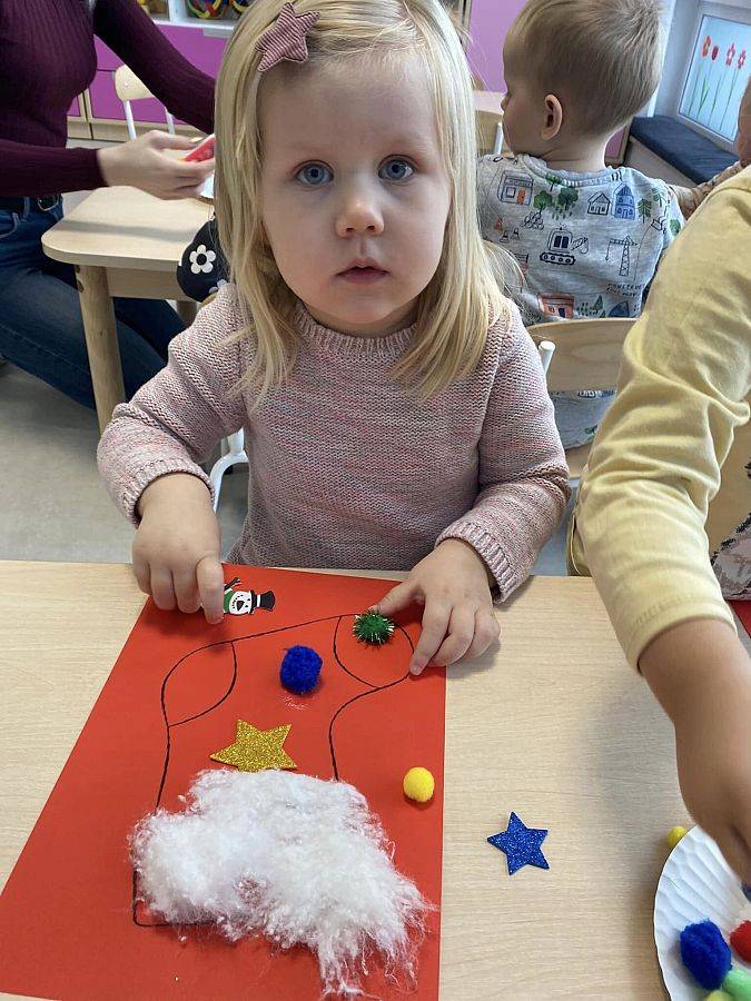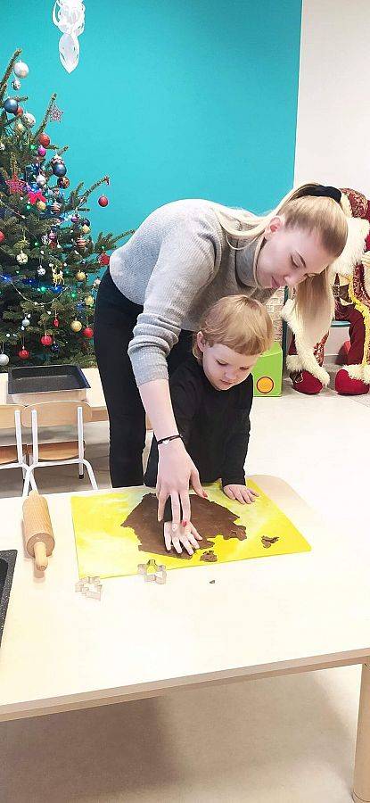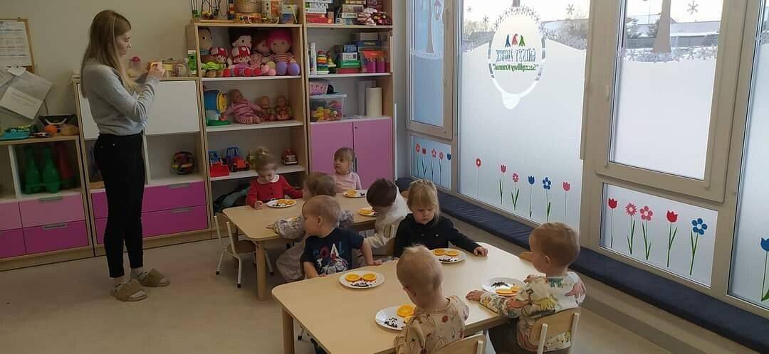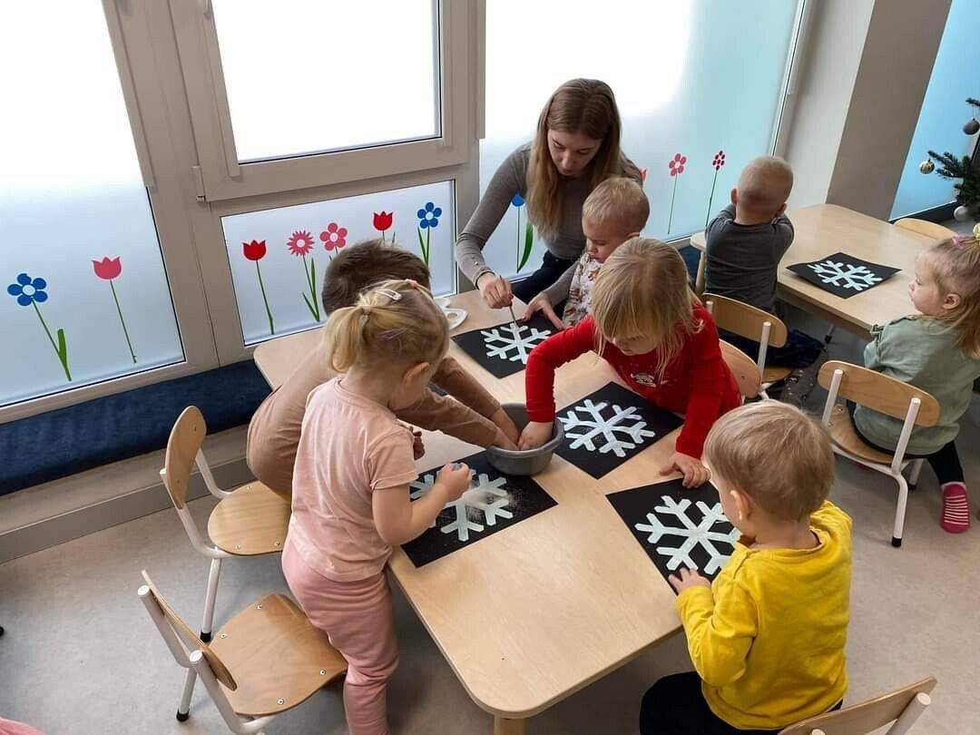 W Grudniu grupa Krasnoludki skupiała się na zajęciach rozwijających motorykę małą oraz doznania sensoryczne. Z okazji Mikołajek dzieci wykonały świąteczne skarpety, które ozdabiały według własnego uznania. Nawiązując do zimowej aury grudnia maluszki zapoznały się z cukrem, który okazał się bardzo słodki w smaku. Ćwicząc swoje małe paluszki dzieci posypywały nim śnieżynki, tworząc na nich szron. Nie ominęły nas również przygotowania do świąt. Dzieci wykonały pachnące ozdoby choinkowe z pomarańczy oraz wykrajały świąteczne pierniczki.