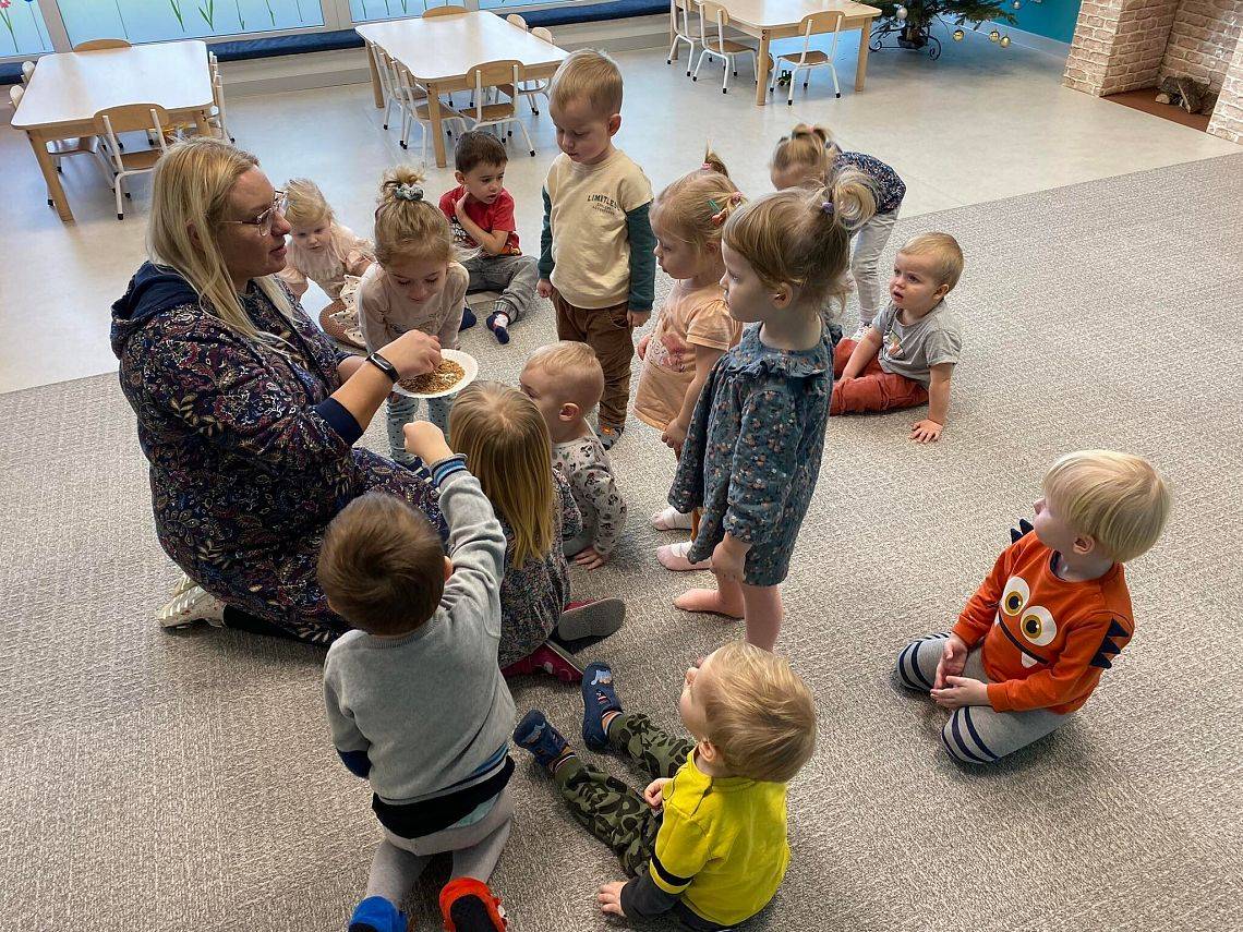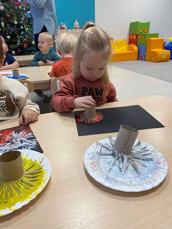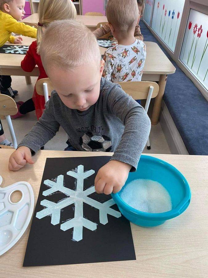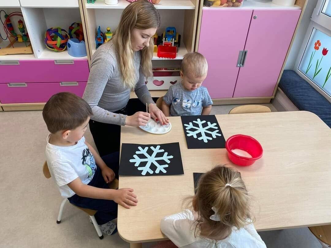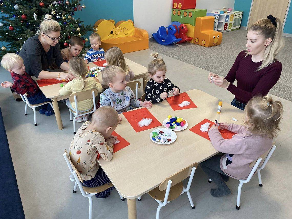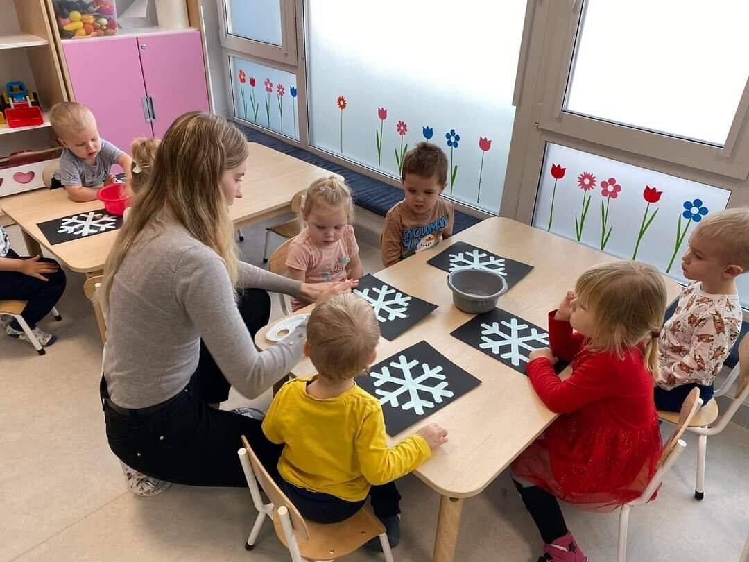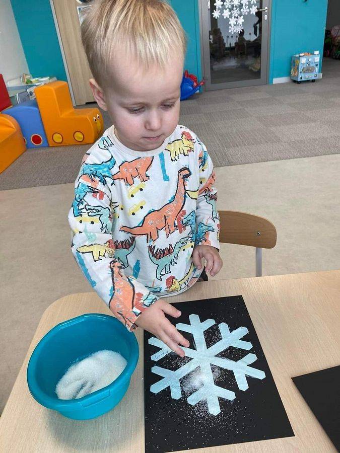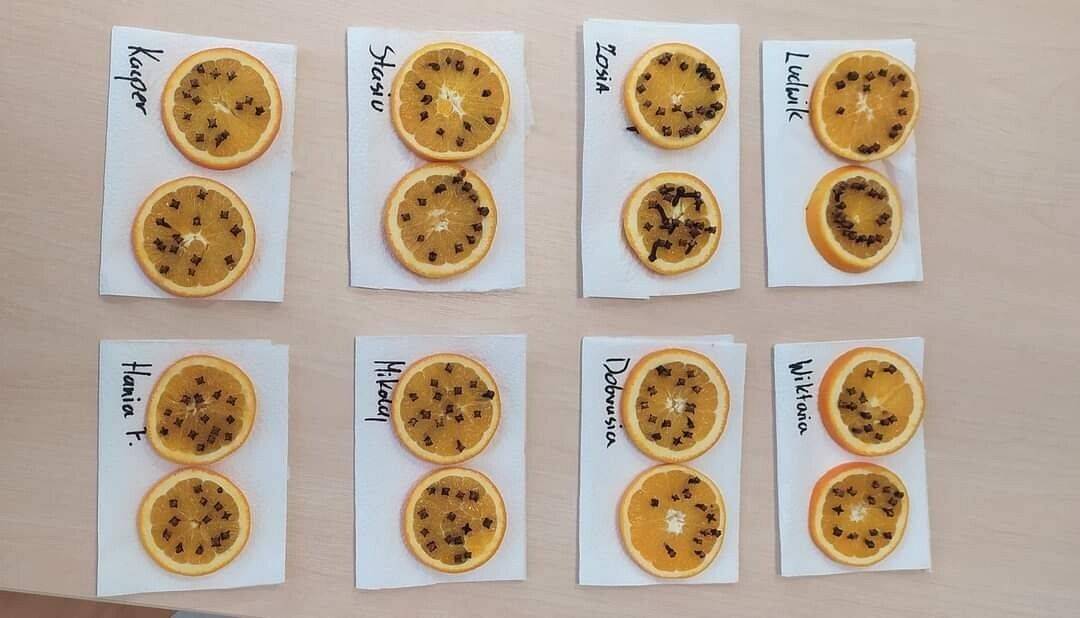 W Grudniu grupa Krasnoludki skupiała się na zajęciach rozwijających motorykę małą oraz doznania sensoryczne. Z okazji Mikołajek dzieci wykonały świąteczne skarpety, które ozdabiały według własnego uznania. Nawiązując do zimowej aury grudnia maluszki zapoznały się z cukrem, który okazał się bardzo słodki w smaku. Ćwicząc swoje małe paluszki dzieci posypywały nim śnieżynki, tworząc na nich szron. Nie ominęły nas również przygotowania do świąt. Dzieci wykonały pachnące ozdoby choinkowe z pomarańczy oraz wykrajały świąteczne pierniczki.