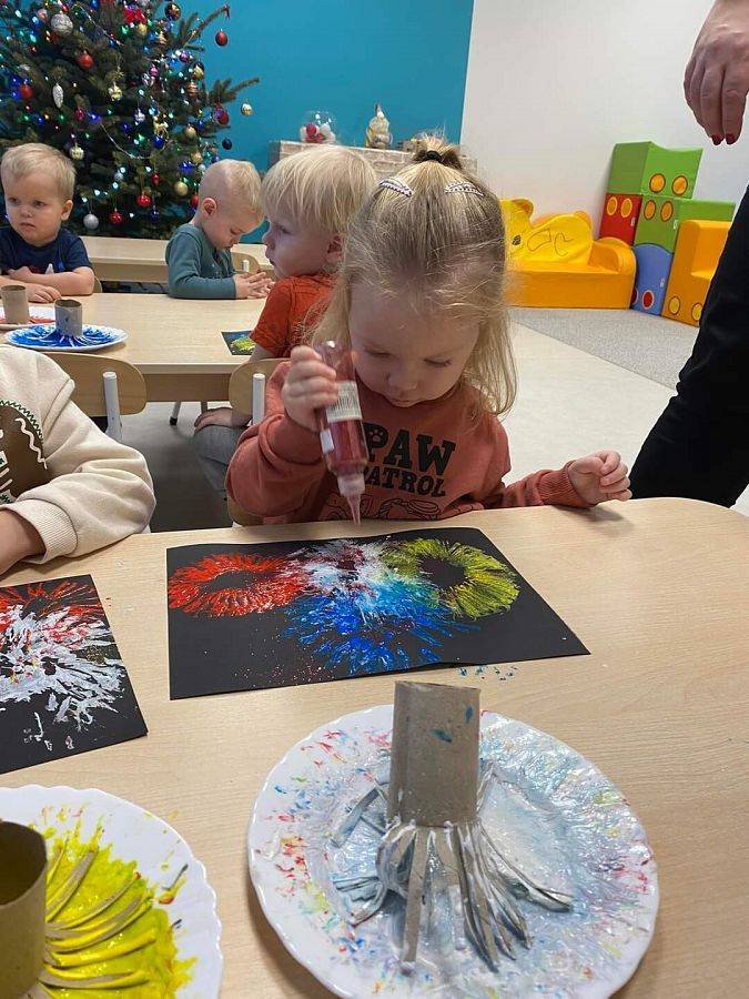 Nowy rok rozpoczęliśmy od wspomnień nocy sylwestrowej wykonując kolorowe fajerwerki oraz od dokarmiania ptaszków fruwających za naszym oknem.