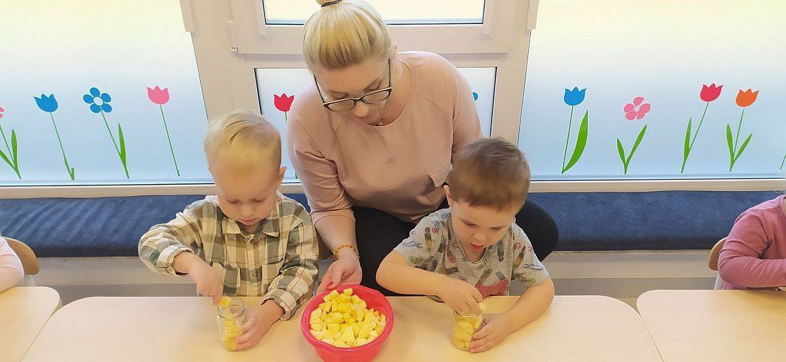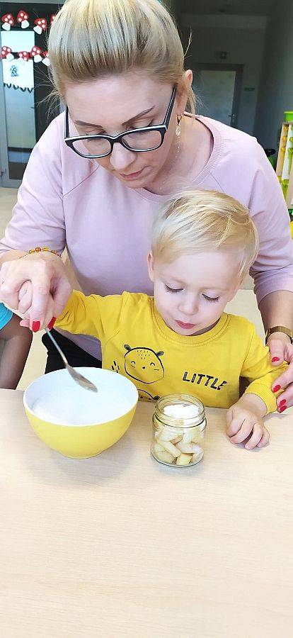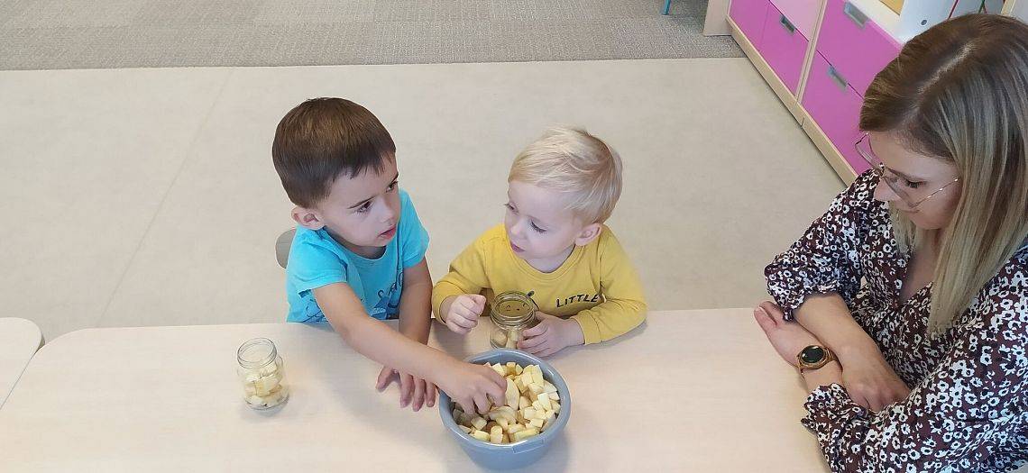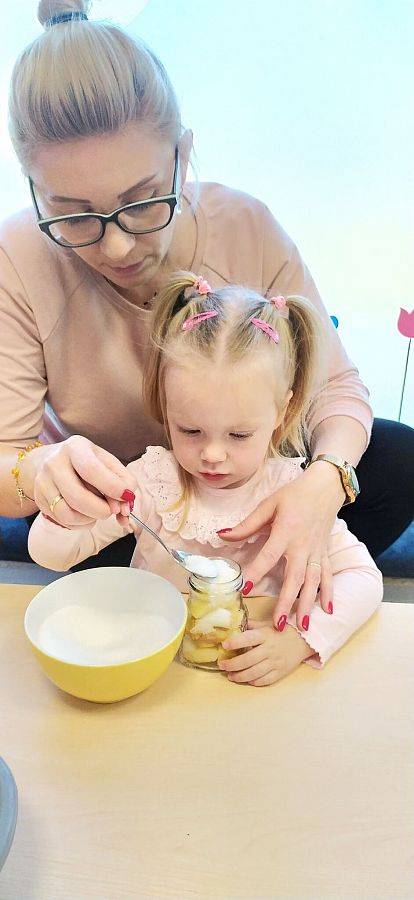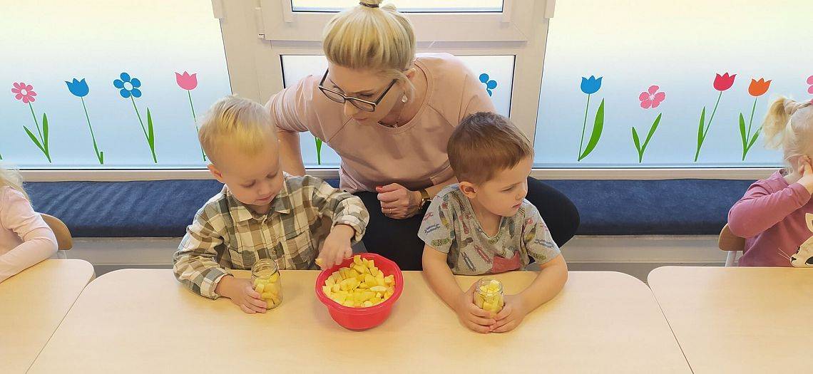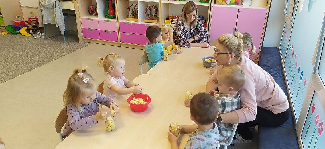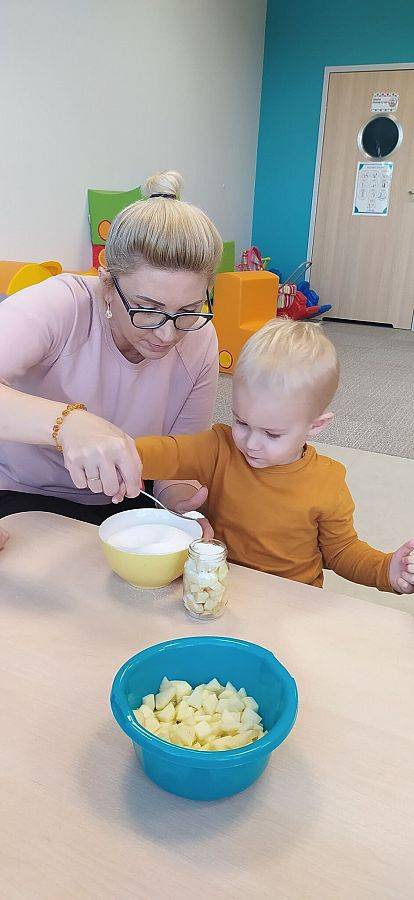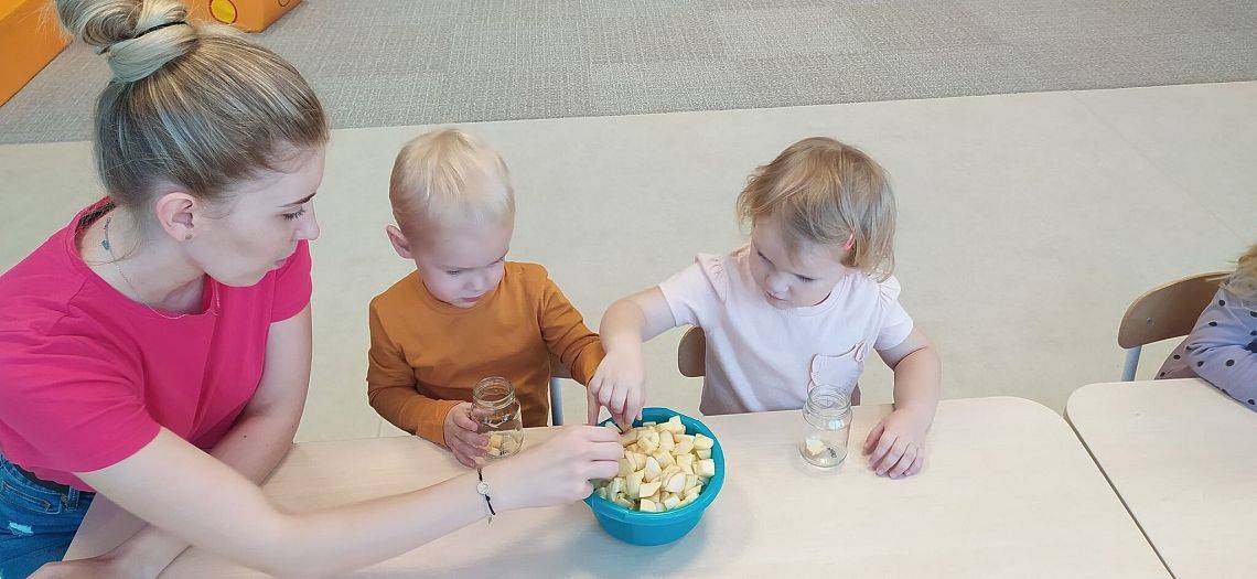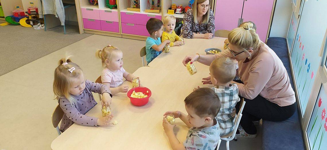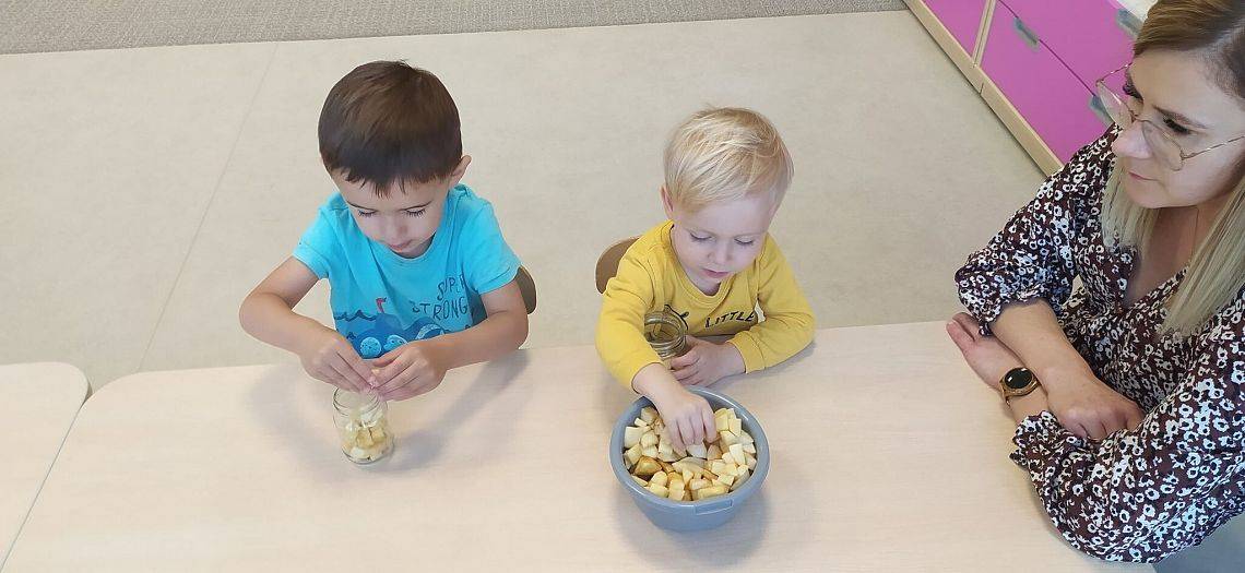 A ile się działo w Krasnoludkach!!! Nasza nastrasza grupa też jest bardzo pracowita. Dzieciaczki sporo się napracowały przy robieniu jesiennych przetworów z jabłek. Innego dnia Krasnoludki same zbudowały sensoryczny tor przeszkód, na którym później nasze Drogie Ciocie pomagały doskonalić umiejętności dużej motoryki. Wszystkiemu towarzyszyły śmiechy i dobra zabawa.