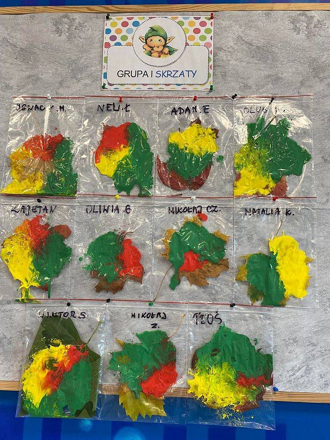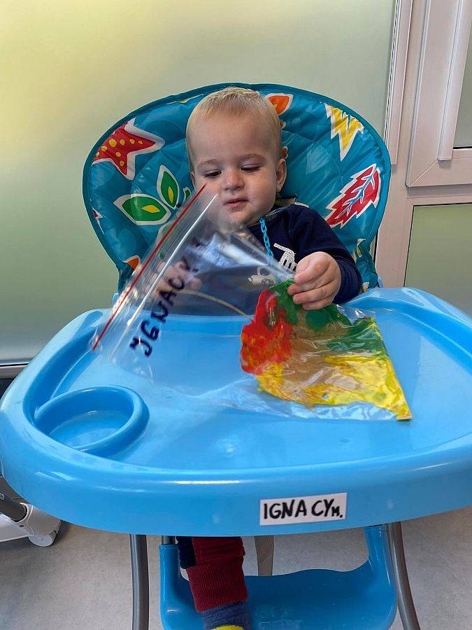I znowu wracamy do was ze świeżą porcją nowinek z naszego żłobka. Drugi tydzień października to czas jesienny. Dzieci w grupach robiły prace plastyczne związane z przyrodą. W najmłodszej grupie nasze maluszki ćwiczyły motorykę małą robiąc prace sensoryczną przy pomocy torebek foliowych, jesiennych liści oraz kolorowych farb.