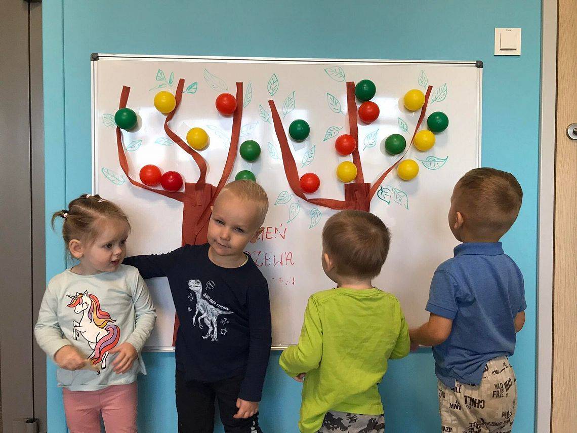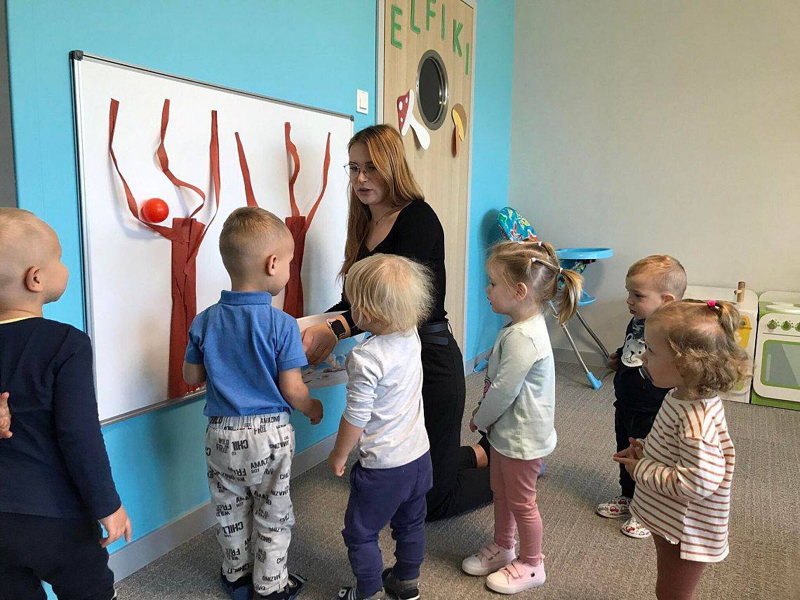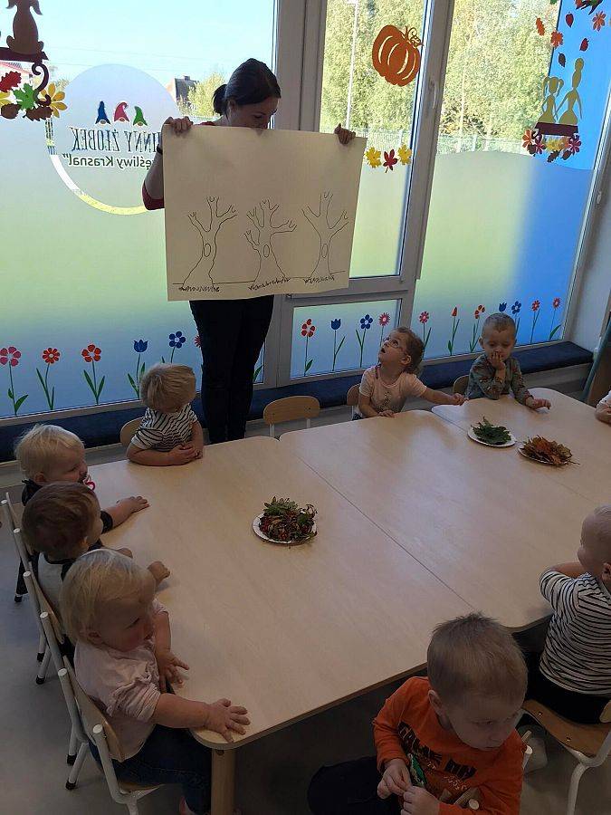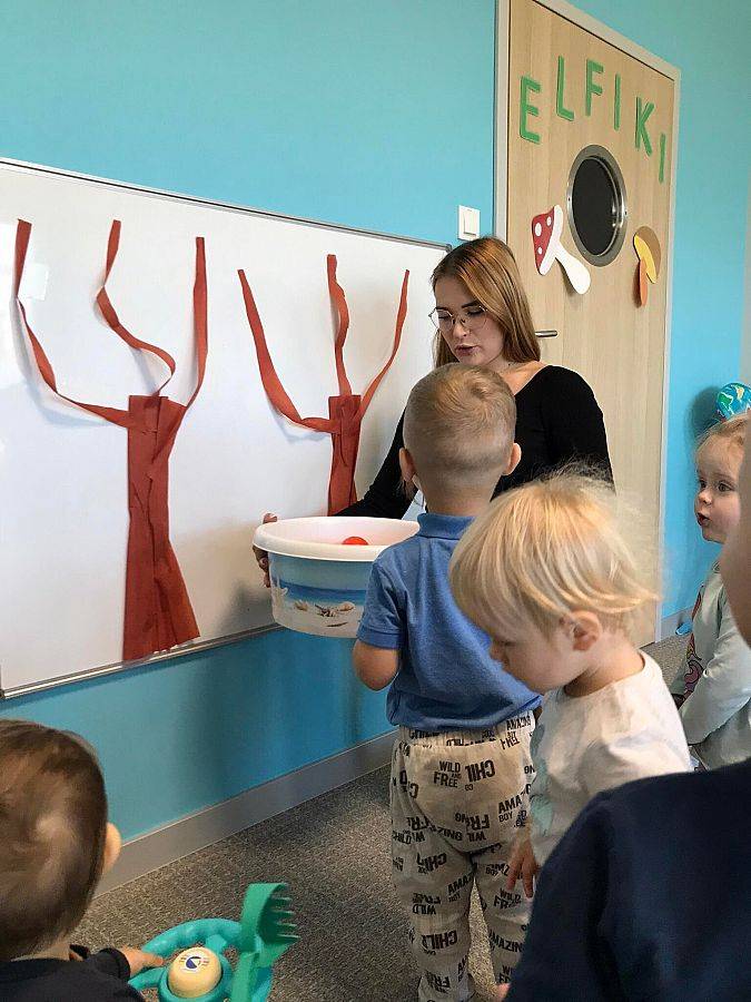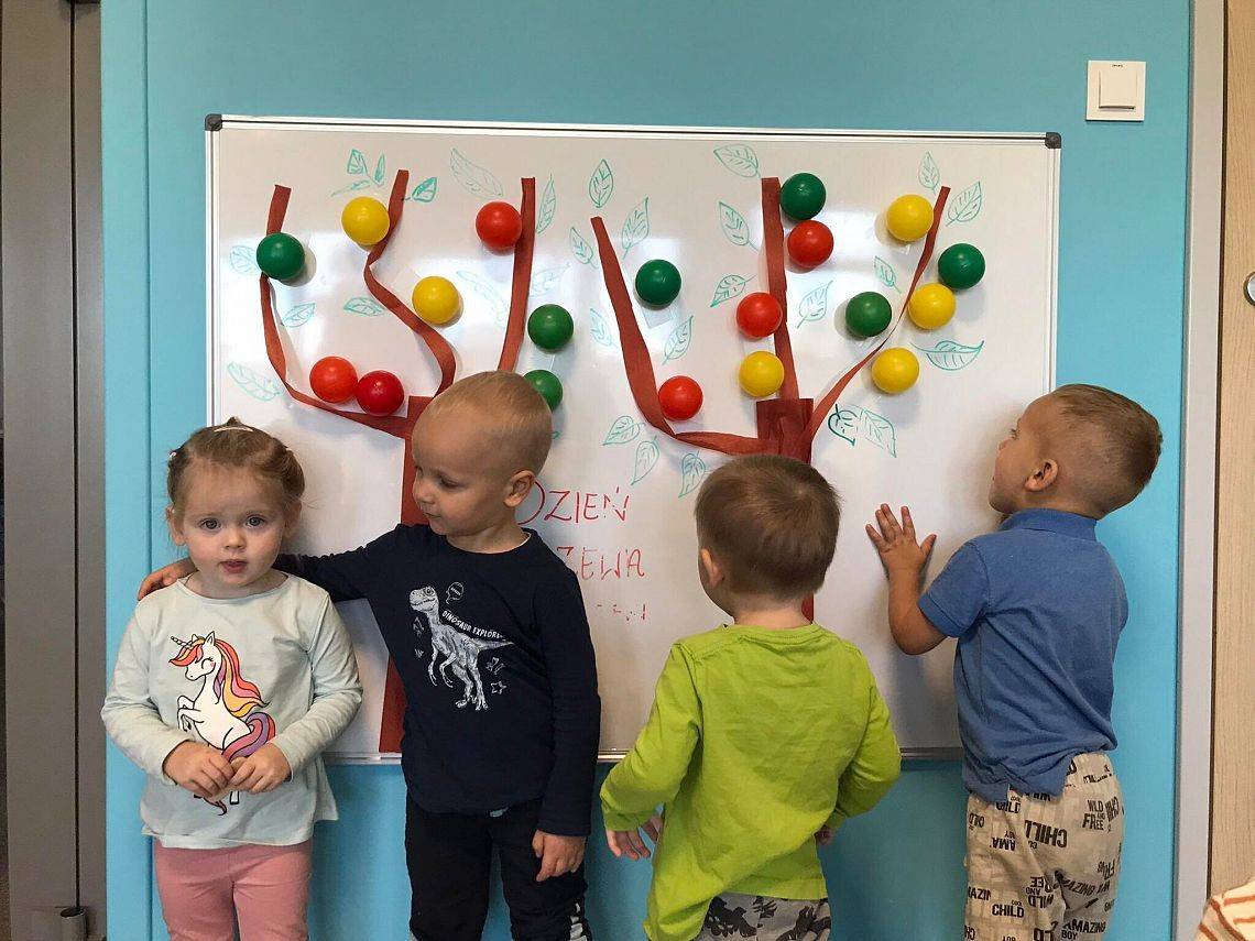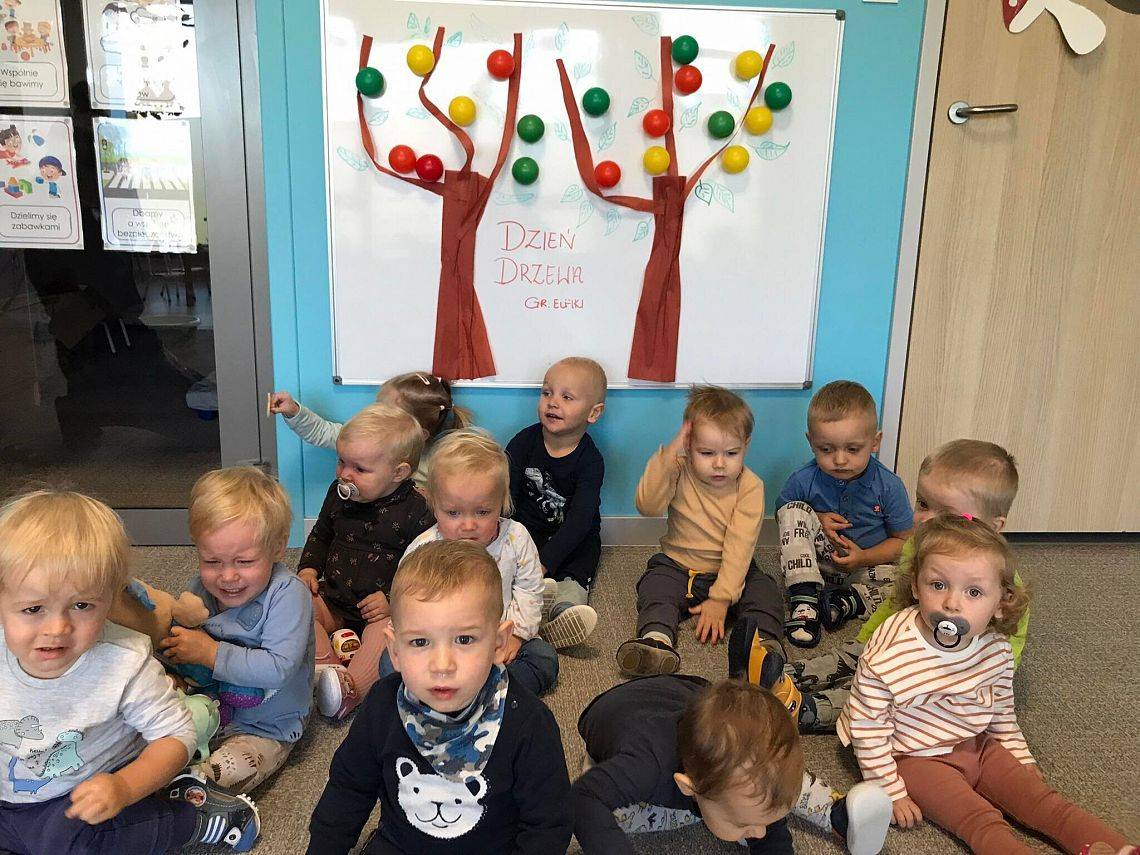 Co roku 10 października obchodzimy w Polsce Dzień Drzewa, który jest elementem edukacji ekologicznej. W naszym żłobku tego dnia odbyły się zajęcia związane z tematyką drzew, dzieci poznały budowę drzewa, jego znaczenie dla człowieka, zwierząt i przyrody. Elfiki przygotowały wspólnie z ciociami piękną pracę plastyczną z zasuszonych liści oraz przy pomocy piłeczek ćwiczyły sprawność swoich małych rączek.