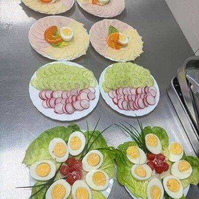 Panie przyrządzające posiłki w naszym żłobku naprawdę dbają o to, by posiłki dla dzieci były ładne i smaczne. Śniadania są kolorowe, a ich wielkość nie przytłacza dziecka (są drobne). Obiady „uczą” dzieci różnych smaków, porcje dostosowane do ich możliwości, przeważnie są dostępne dokładki dla chętnych.